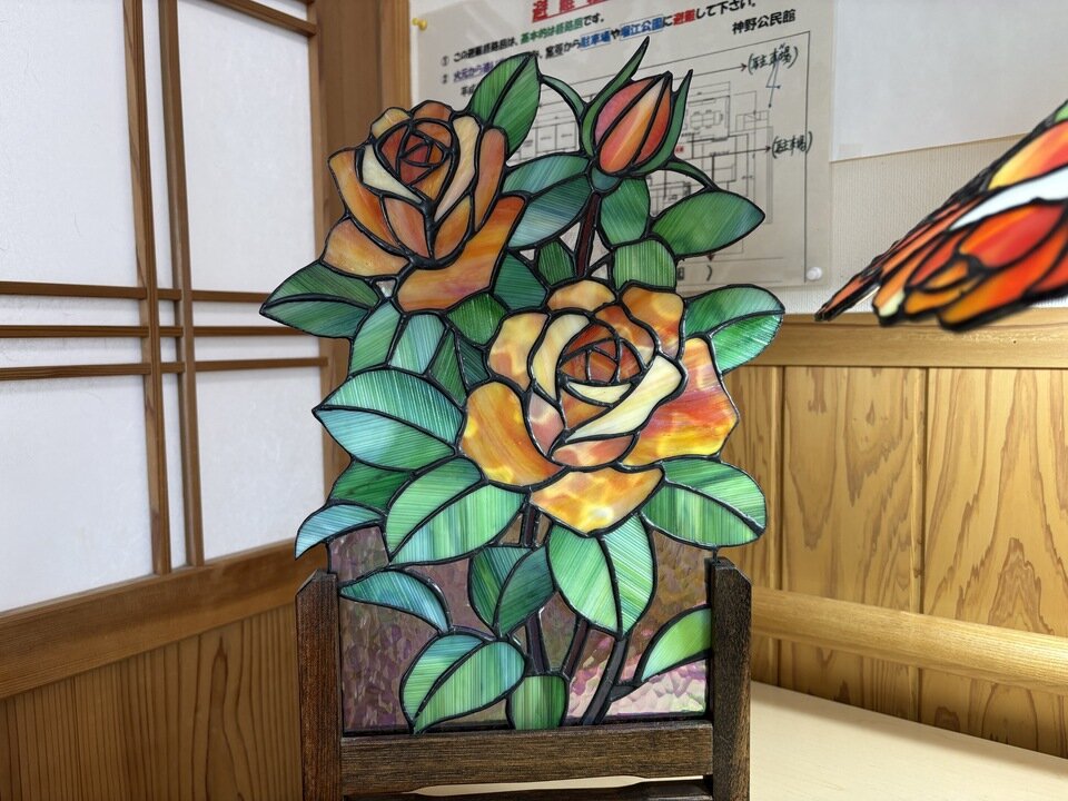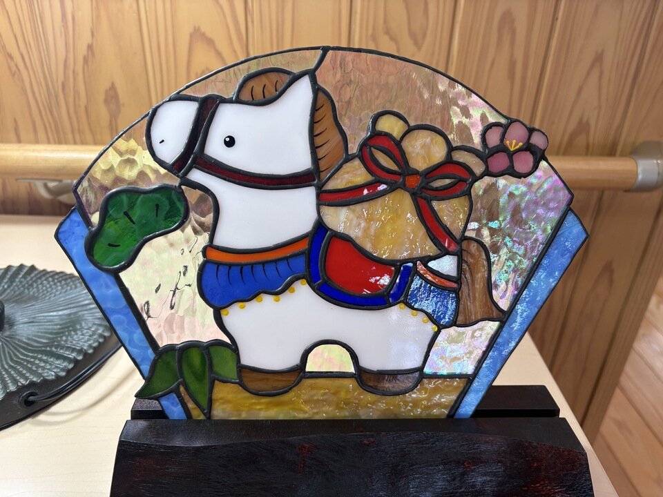 まだご紹介出来ていませんでしたが、今年も年始からM田さんがステンドグラスを飾りに来てくださいました。