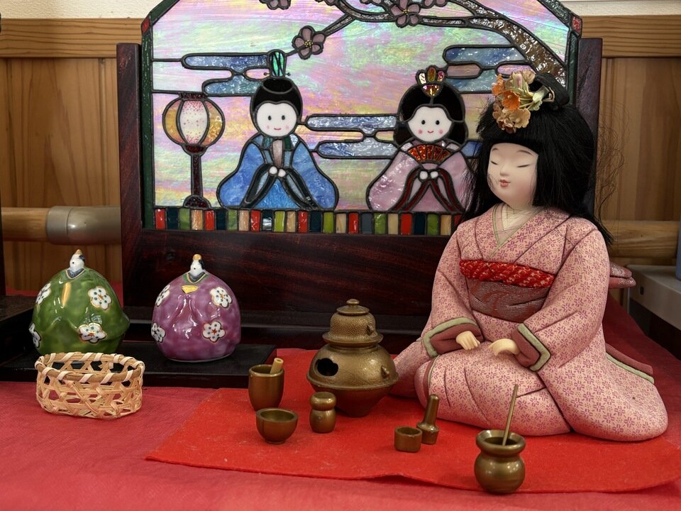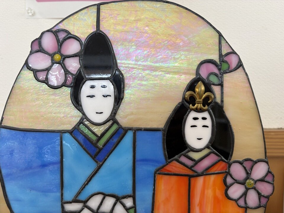 もちろんステンドグラス版ひな人形も飾っています。![]()
