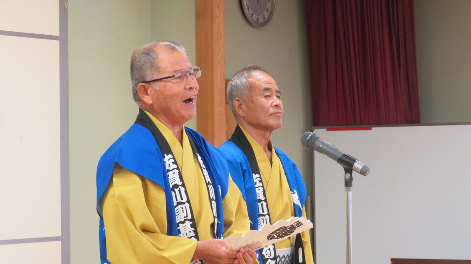 オープニングを飾ったのは『子どもダンスクラブ』。幼稚園から小学校低学年の子どもたちが、月に3〜4回巨勢公民館で練習しています。江口さん、山口さんの相撲甚句では、ユーモアあふれる歌詞が笑いを誘っていました。