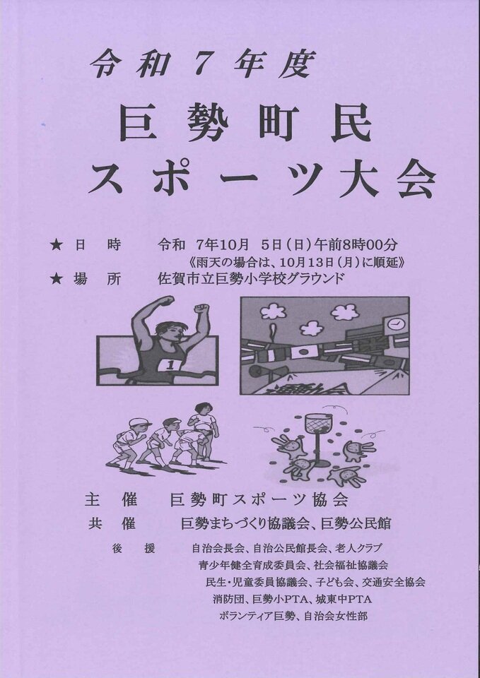 「令和7年度巨勢町民スポーツ大会」は、明日5日(日)、予定どおり開催されます。