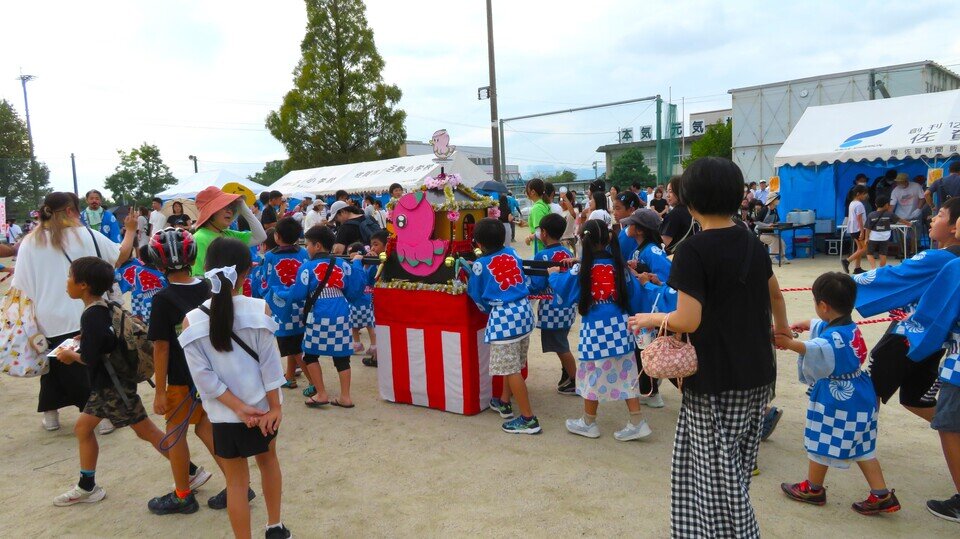 例年7月に開催されてきた『巨勢まつり』ですが、ことしは熱中症対策のため9月27日(土)に開かれました。会場は巨勢小学校運動場です。