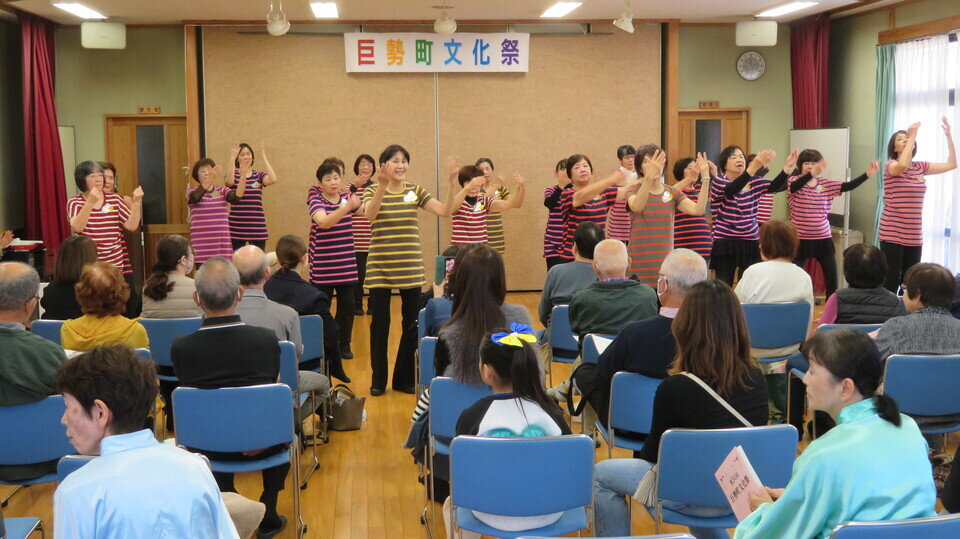その後ステージでは、公民館サークルを中心に、相撲甚句、ダンス、太鼓の演奏などが次々に披露されました。
