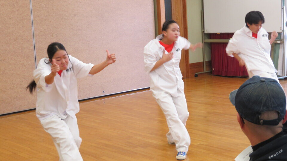 ことしのステージ発表最後は、同じダンススクールに通う中高生5人のダンス。巨勢町文化祭のため新たにユニットを組み、3曲を披露して会場を大いに盛り上げてくれました。
