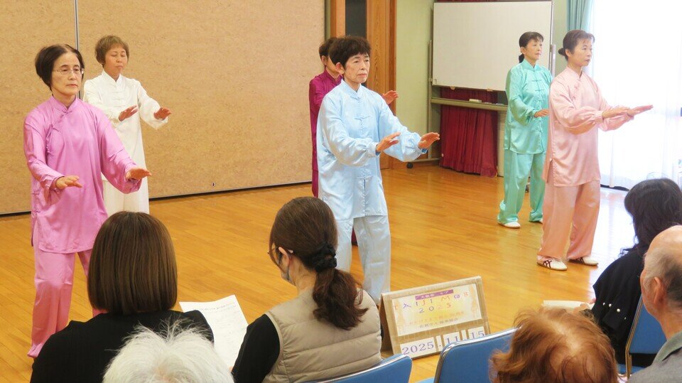 太極拳蓮々は昨年の巨勢町文化祭にも出演されました。光沢のあるゆったりとした衣装は、優雅な動作と相まって一際華やいでいました。太極拳のゆっくりな動きは、心と体を整えるといいます。