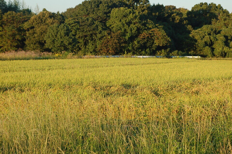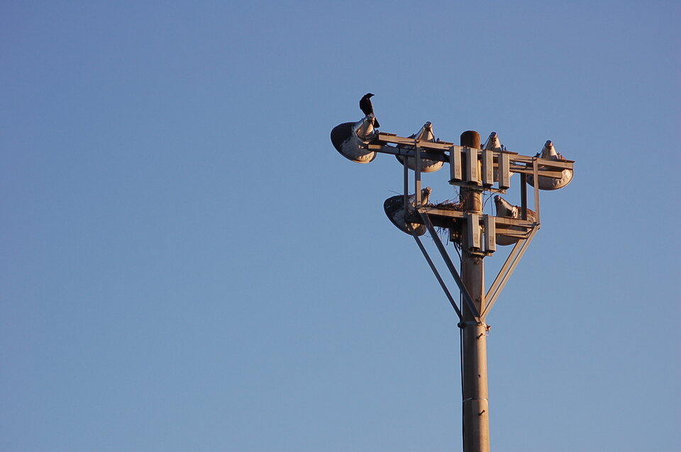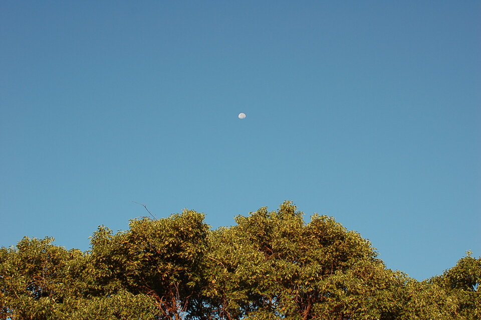 このてっぺんの枝にモズさんがいつもいるのに。カラス。そろそろ子育て考え中かな。朝月(あさつき)がまだ出ていました