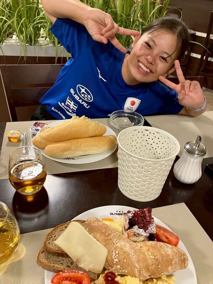 一枚は朝ごはんの写真をオフショットとして(笑)、三枚は大会の様子です。」