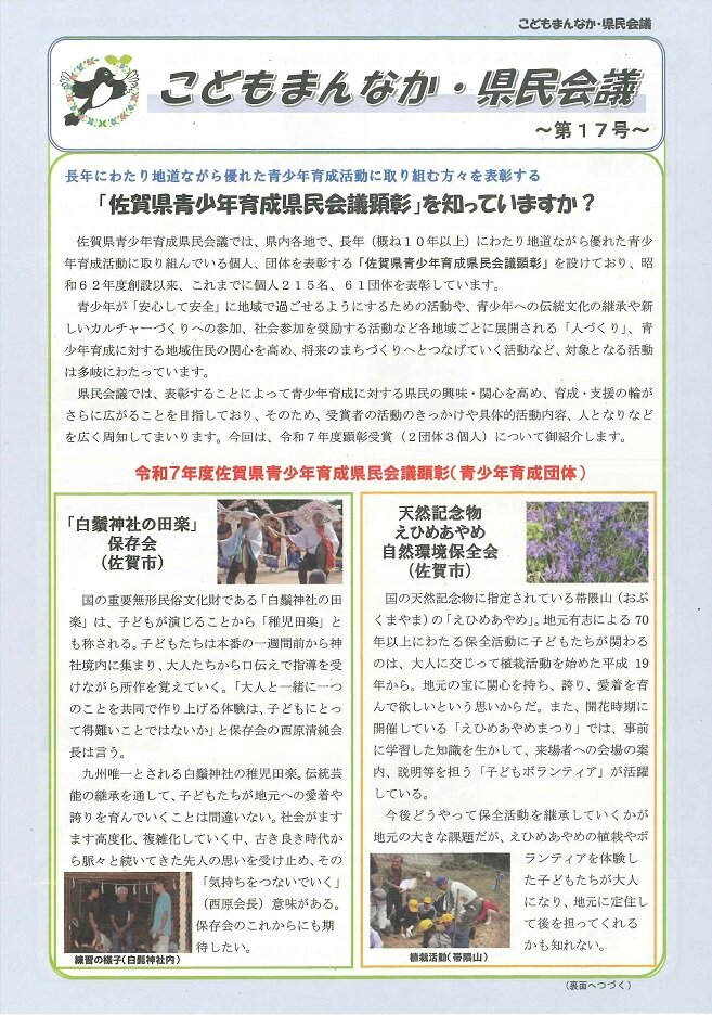 「こどもまんなか・県民会議~第17号~」の表紙にダブル受賞の記事が掲載されています。