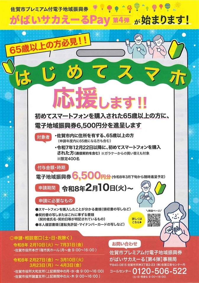 初めてのスマホ購入者に限ってですが、佐賀市の購入補助金が用意されています。