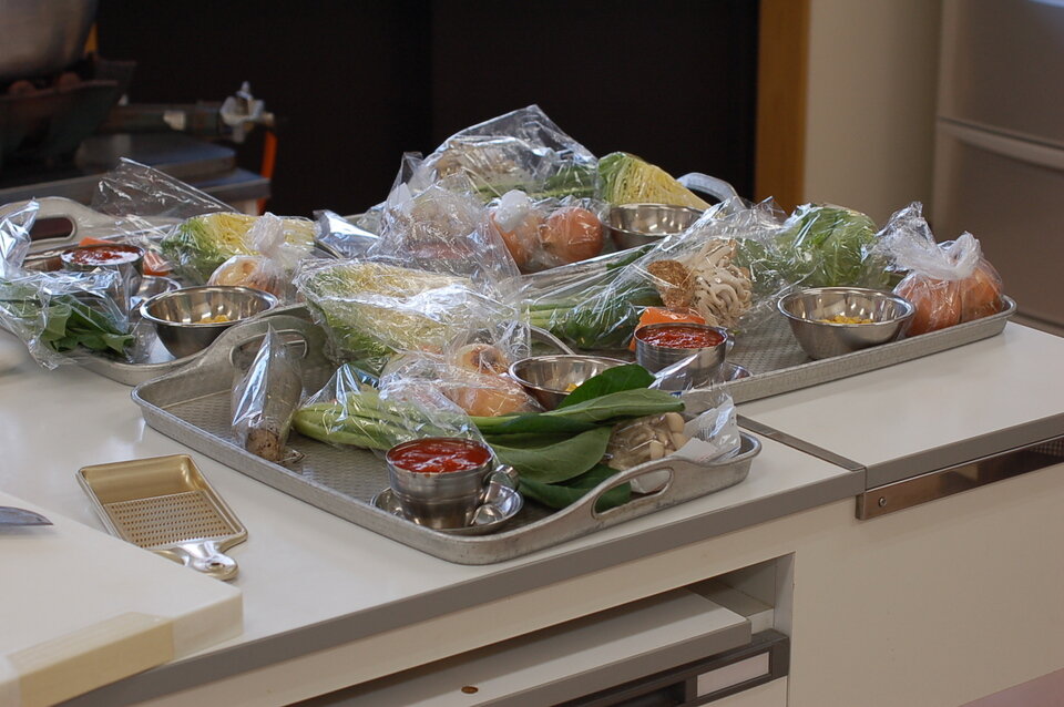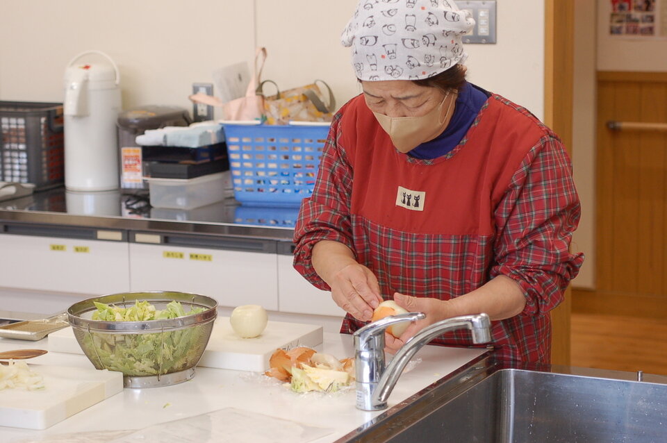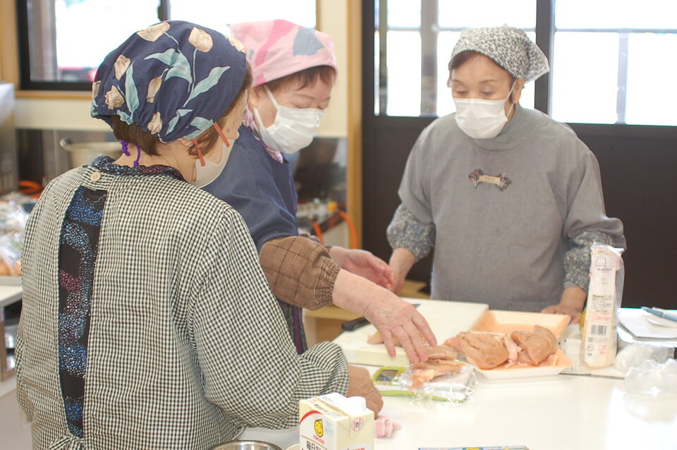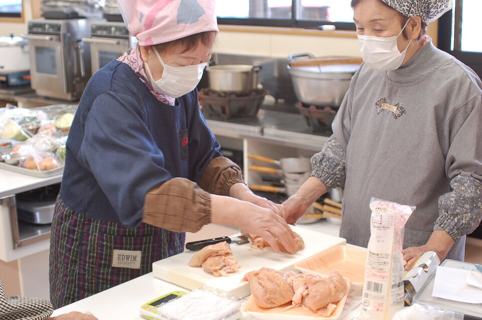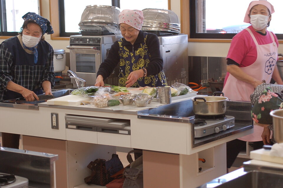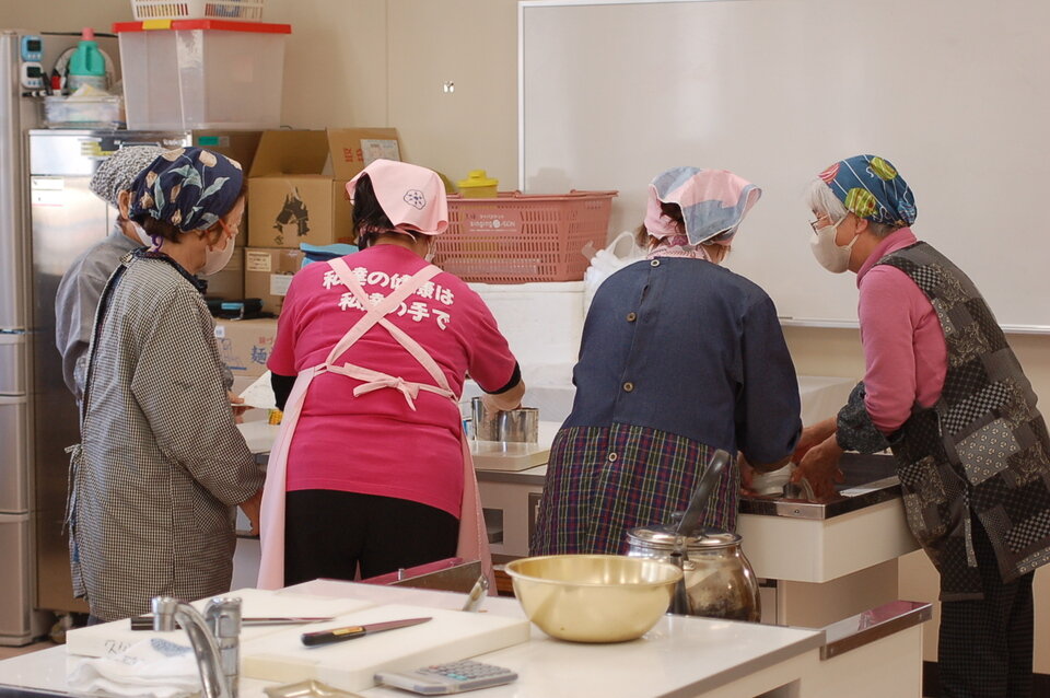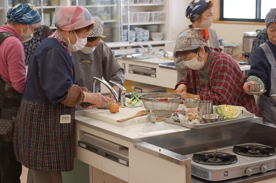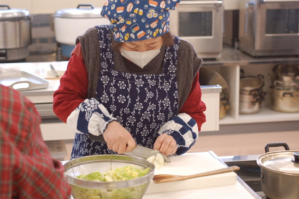 2月20日(金)の調理実習室では長寿会の皆さんを受講者に、食改善さんの伝達講習会が行われました。テーマは「糖尿病予防」。