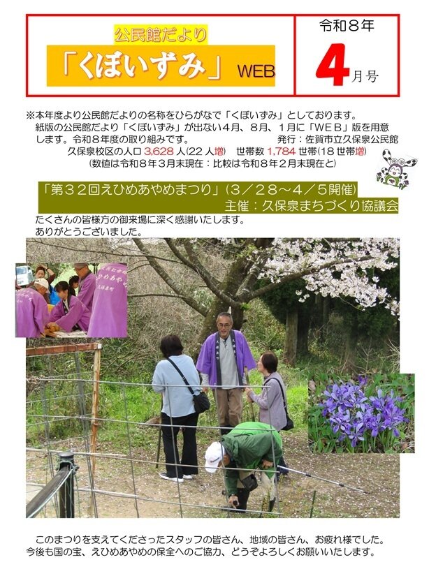 公民館だよりのタイトルをひらがなの「くぼいずみ」とした最初の号はウェブだよりです。