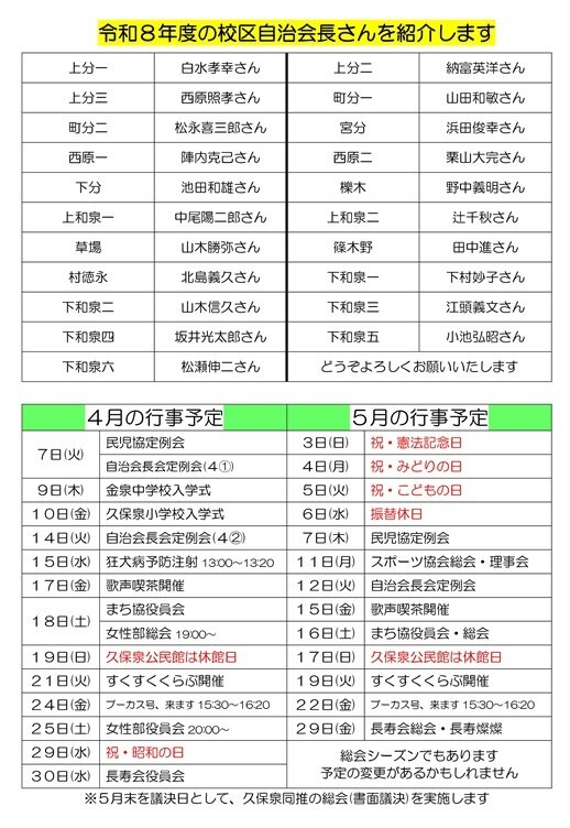 久保泉校区からのお知らせ