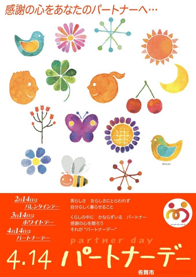 佐賀市では1998年(平成10年)から4月14日を「佐賀市パートナーデー」と制定、大切な方に感謝を伝える日です。