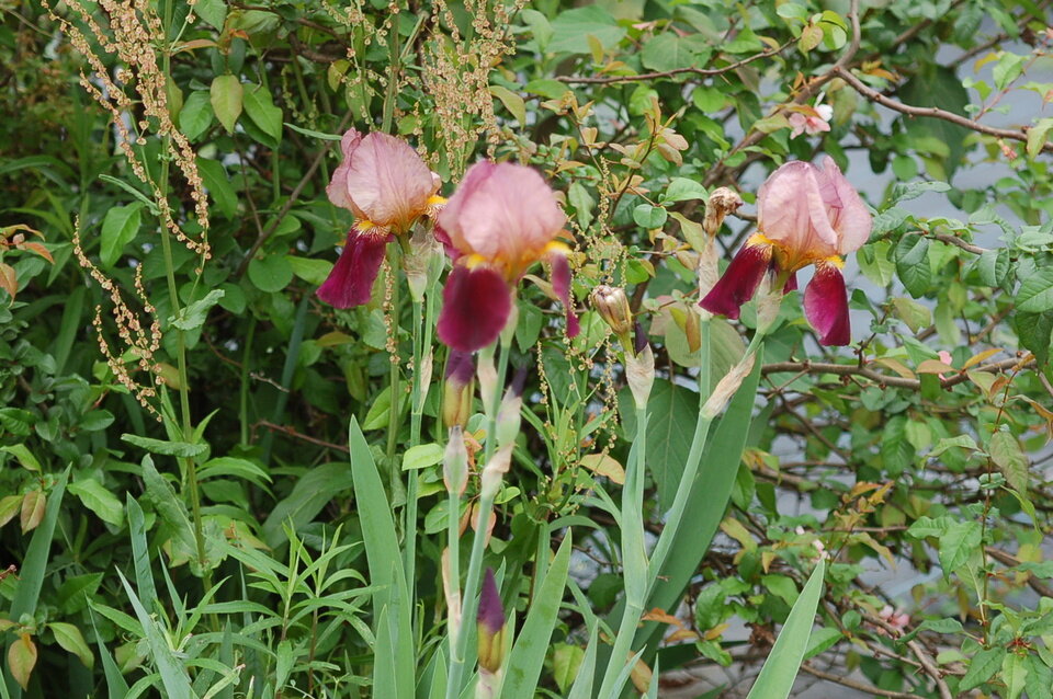 もずちゃん。一輪のバラ。シャレオツ。キダチダリヤ(皇帝ダリヤ)、でしょうか。ツルニチソウ、かな。