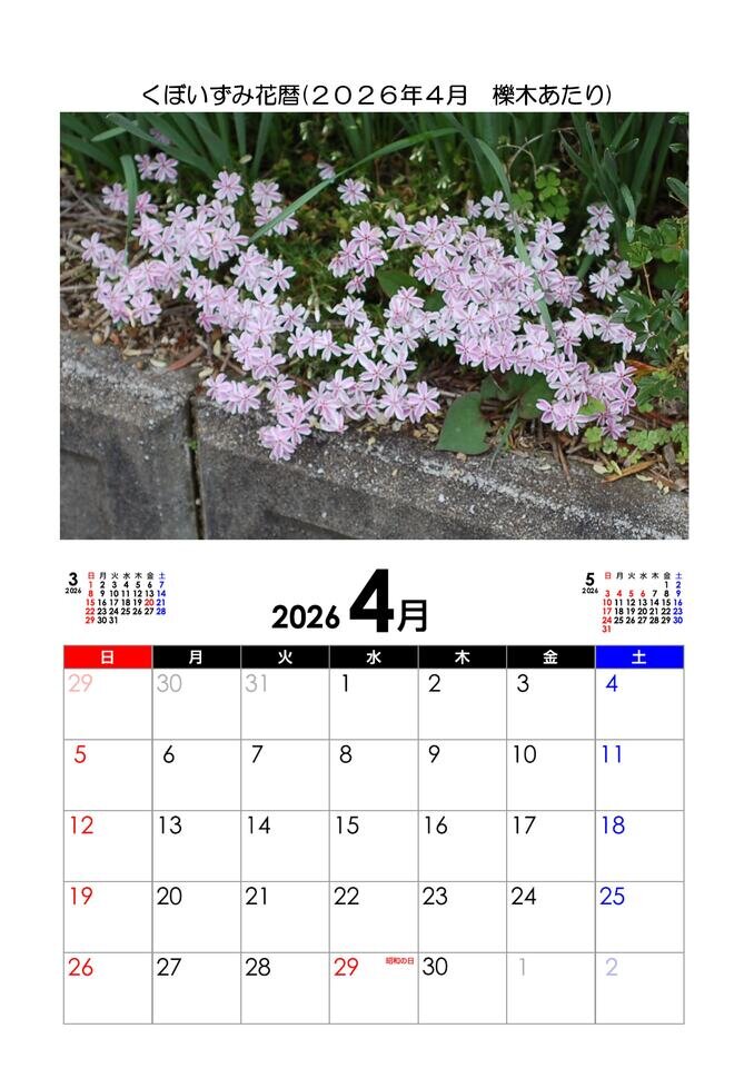今年4月のカレンダー仕立てにしています。