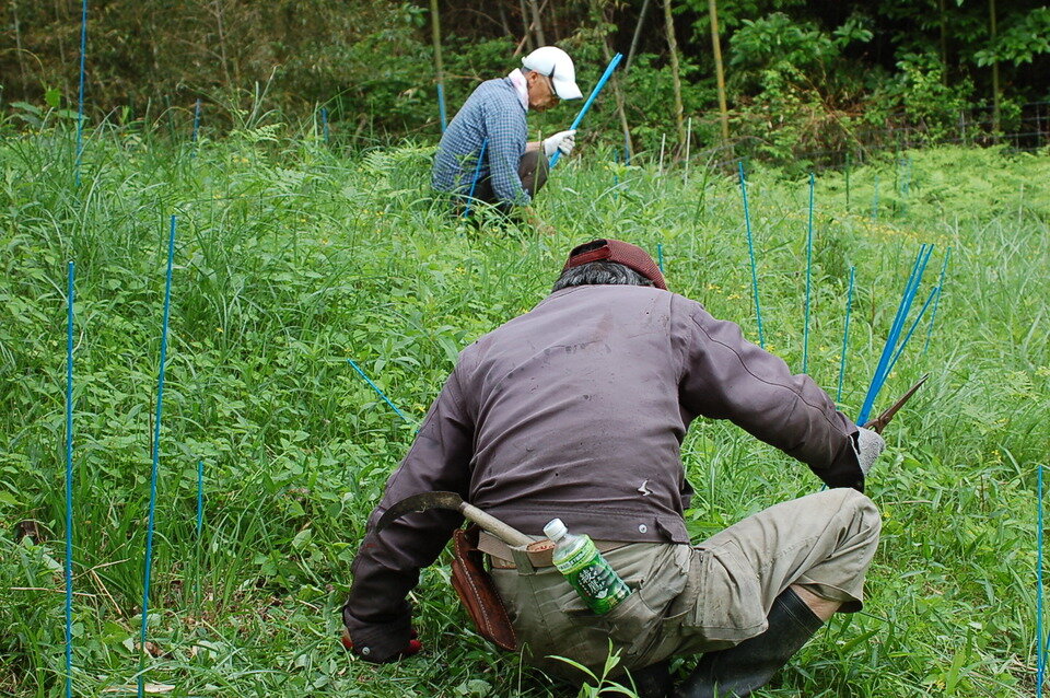 「えひめあやめのうた」の歌詞にあります「小高い丘の斜面」でも作業が進められています。