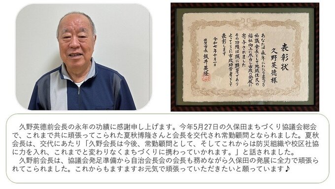 佐賀市長から表彰状 久野英德さん・増野豊光さん