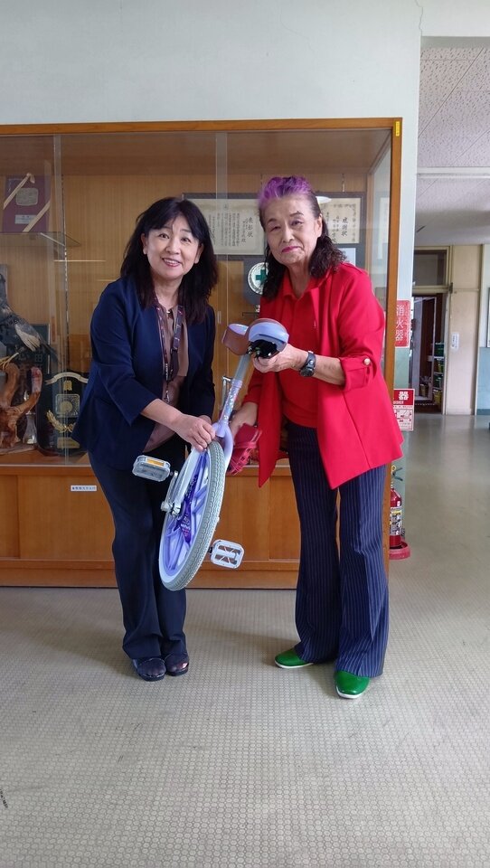 佐賀県一輪車協会と佐賀県一輪車クラブ保護者会が、思斉館小学部に一輪車10台を寄贈しました。県協会の江口英子会長らが学校を訪れ、坂本康子校長や児童らに手渡しました。 同校は数十年前まで一輪車を所持していましたが劣化などで現在はなく、活動拠点としている久保田町の子どもたちの健全育成を目的に贈られました。
