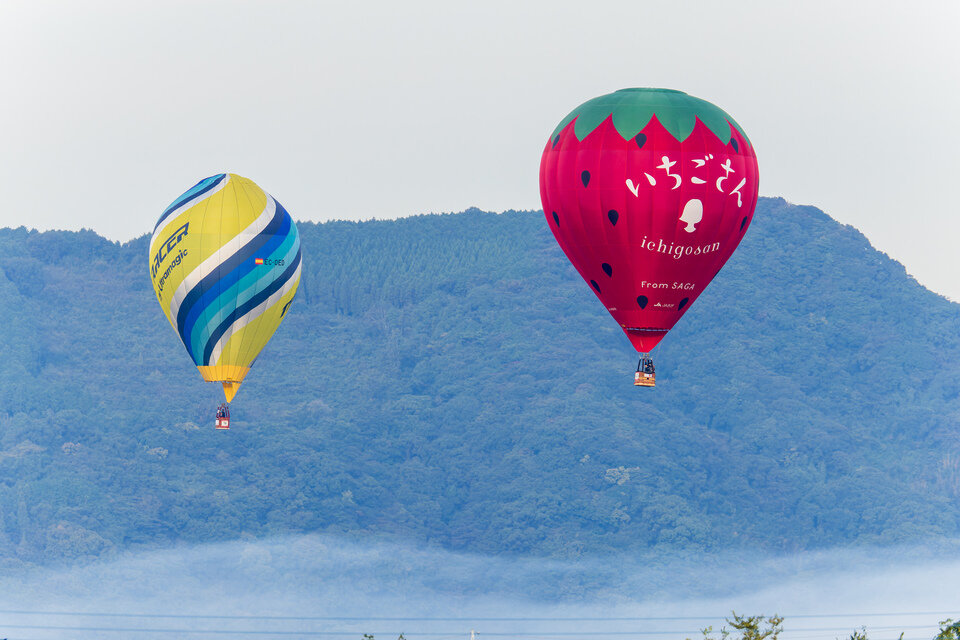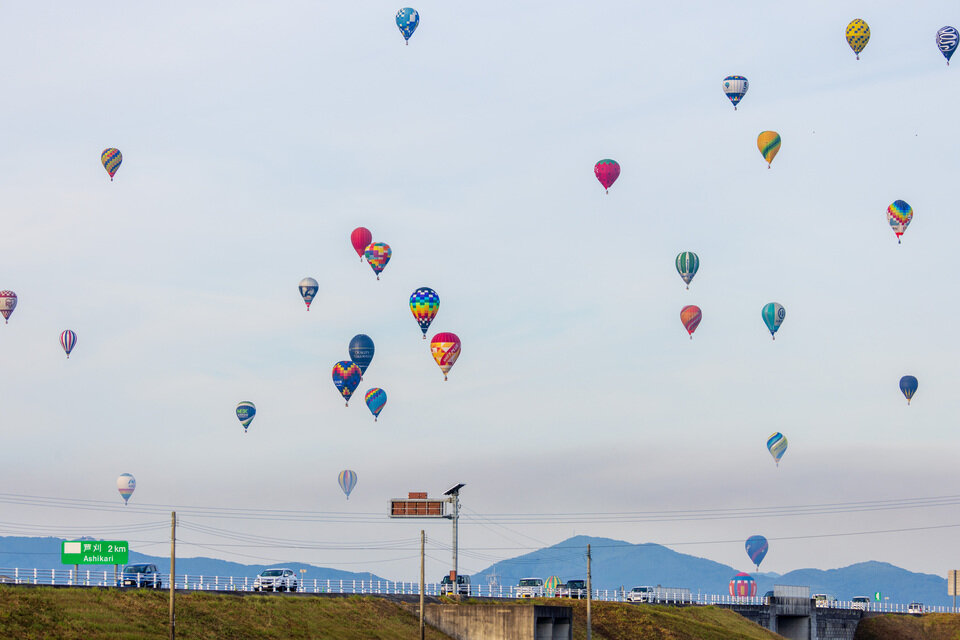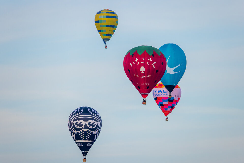 秋の佐賀の風物詩バルーンフェスタが開幕しました。午前7時過ぎに嘉瀬川河川敷を一斉離陸し、南西方面へ飛行していきました。バルーンフェスタは11月3日(月・祝)まで開催されますので、ぜひお出かけください。