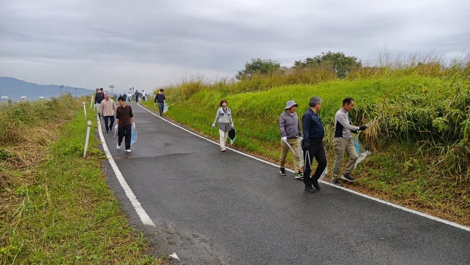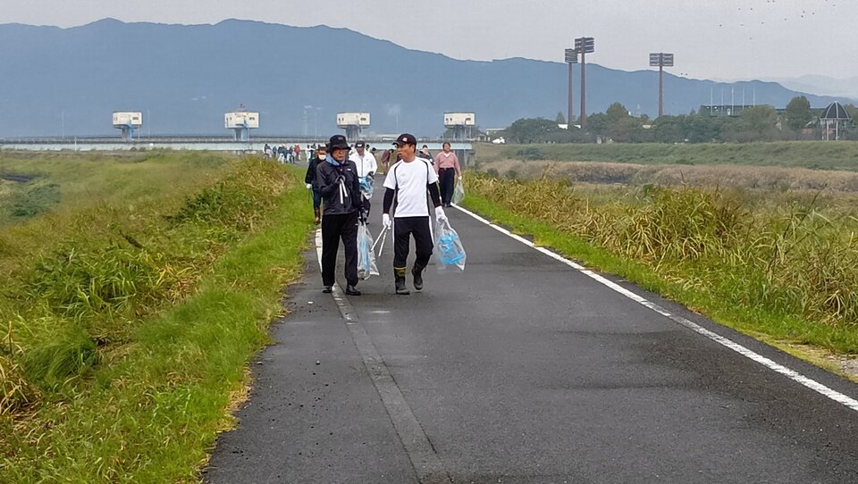 久保田町の嘉瀬川一帯で10月25日、地元建設業者や自治会など約100人がごみ拾いのボランティアを行いました。 ごみ拾いは、バルーンフェスタのメイン会場周辺をきれいにして来場者に気持ちよく訪れてもらい、また有明海のごみ流出を防ごうと毎年行われています。地元の森永建設や丸福建設、佐賀河川事務所、自治会などが参加。参加者は河川敷や土手など6キロを歩きながら、空のペットボトルやたばこの吸殻などを拾っていきました。