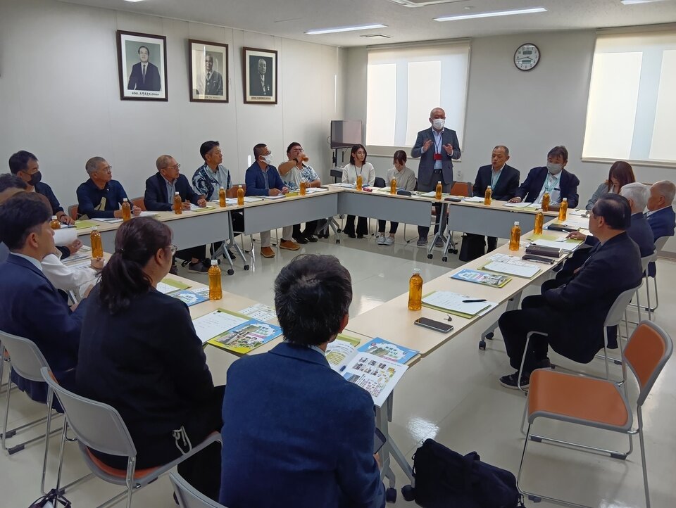 沖縄県名護市企画部の職員や、市内の辺野古区・豊原区・久志区の区長ら15人が佐賀市役所久保田支所を訪れました。佐賀市地域振興部の職員や久保田まちづくり協議会の役員らと意見交換するなど、まちづくりについて話し合いました。 このうちまち協の夏秋博隆会長は移動支援事業のさるこうカーを説明。移動支援の実証実験を行っている名護市側からは、どういった仕組みで運営しているのか、移動範囲や目的など広範囲にわたって質疑応答がされました。