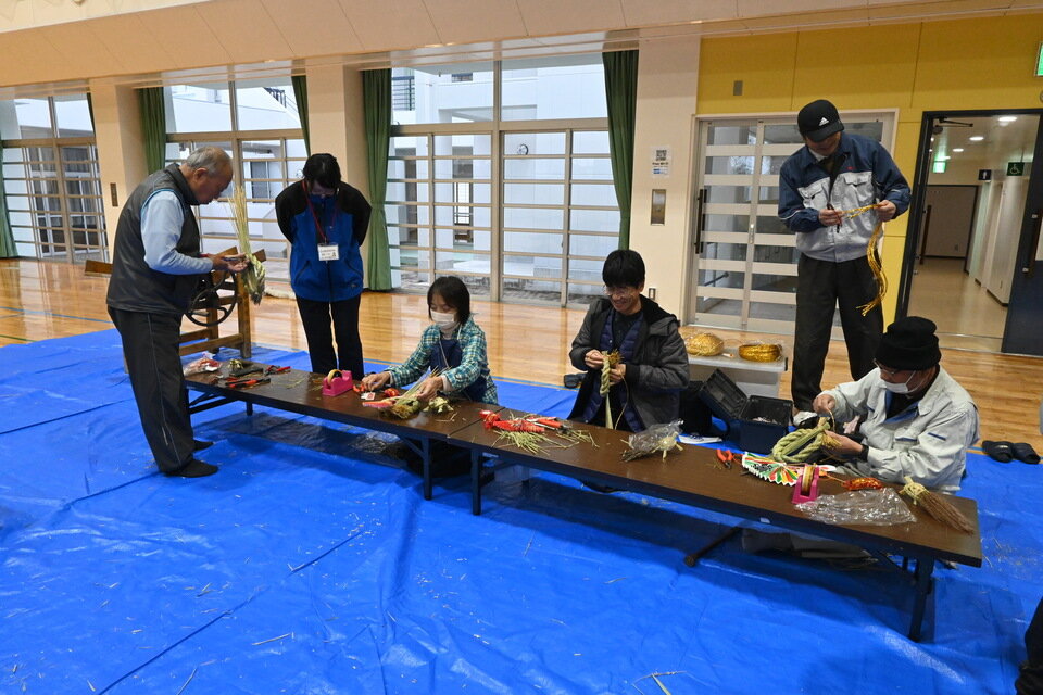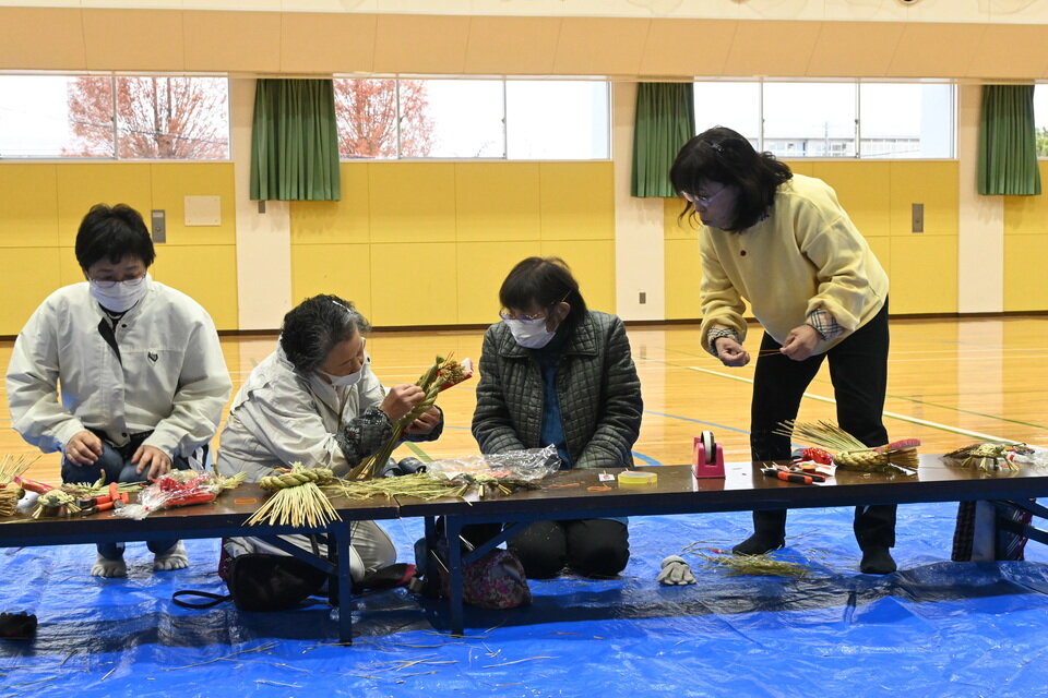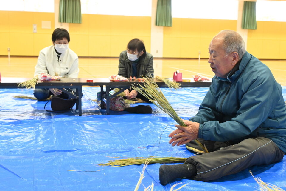 久保田校区社会福祉協議会は12月13日、佐賀市久保田町の久保田農村環境改善センターで正月飾りのしめ縄づくり教室を開きました。参加者はワラの束を巻き、縄を作る箇所で苦戦気味でしたが、校区社協の久野英德会長らの丁寧な指導を受けながら、手作りのしめ縄を完成させました。