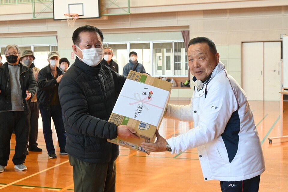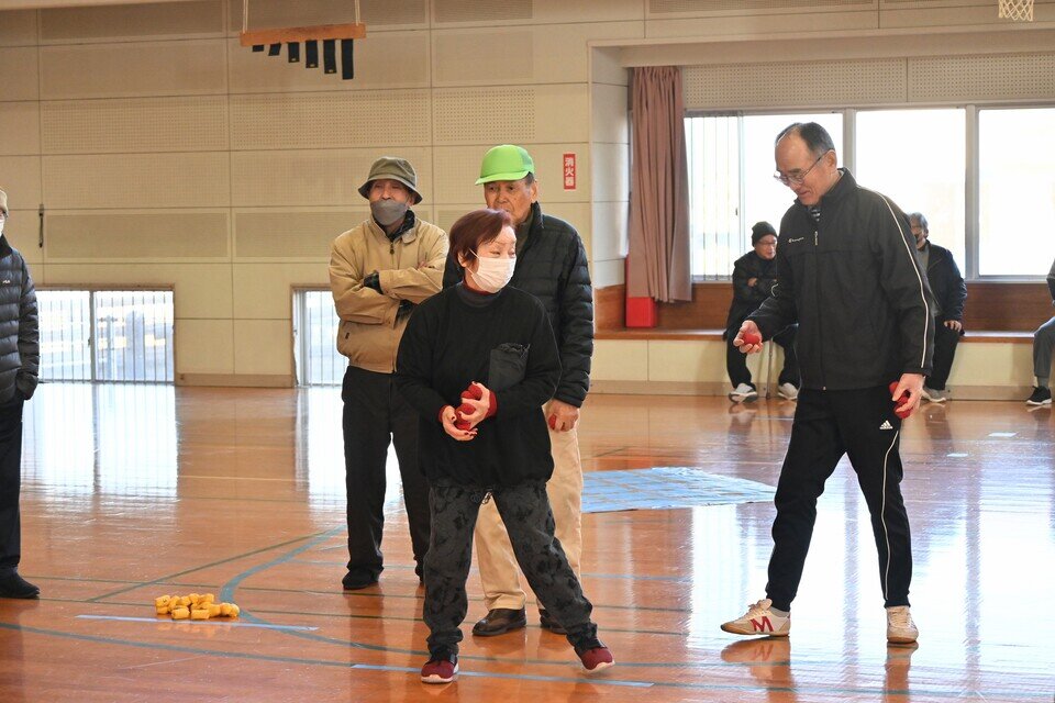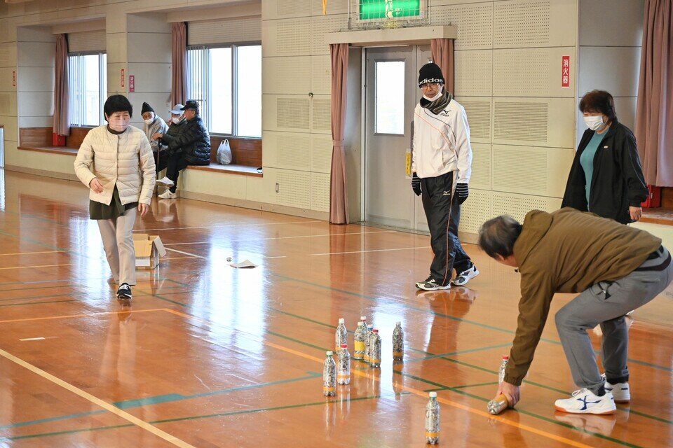 久保田町の思斉館中学部体育館で1月18日、ニュースポーツ大会がありました。 9チームで対戦した「いごてだま」では福島チームが優勝、2チーム出場した思斉JVCが2位と3位になりました。 この他、モルックやスカットボールなどの体験会もありました。