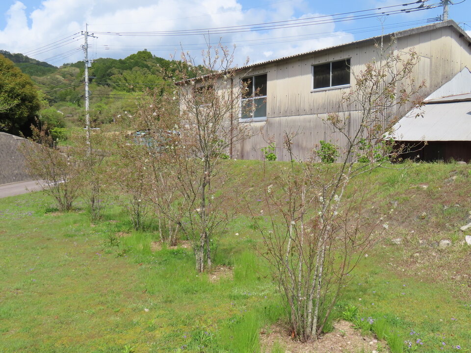 松梅公民館の駐車場につながる上り坂の法面の芝生には6本のブルーベリーの木があります。ブルーベリーの木が植えられた経緯は分かりませんが、可愛い白い花が咲きました。5月には実がなります。