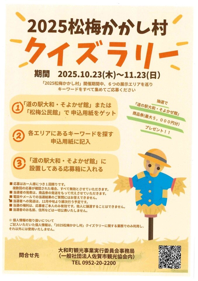 かかし村の6つのエリアを回ってキーワードを書いて応募できます。