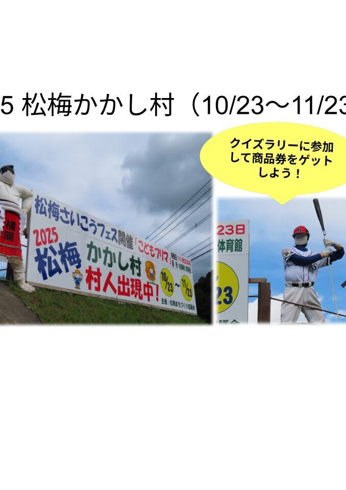 毎年恒例の松梅「かかし村」が10月23日(木)から開催しています。
