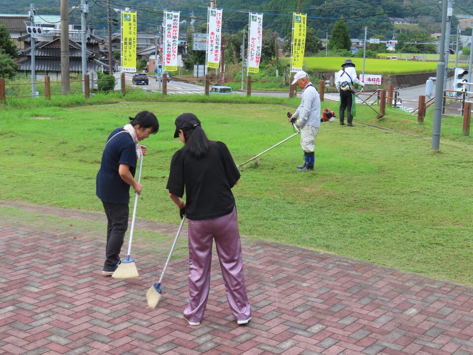 1時間ほどかけての敷地内の草刈りと館内の清掃でみちがえるほどきれいなりました。
