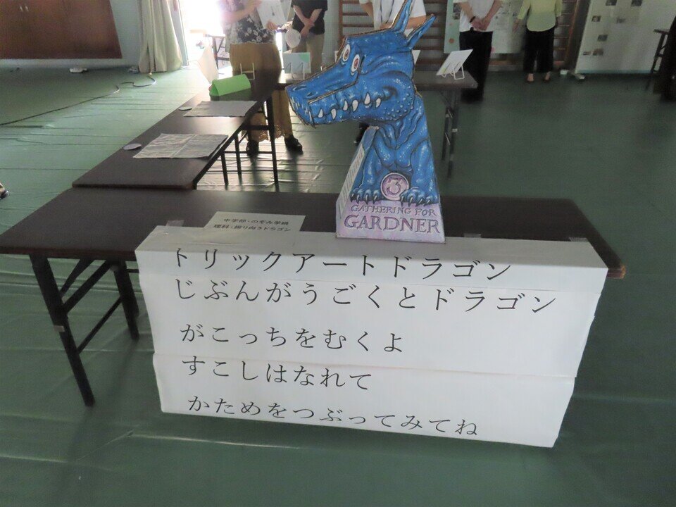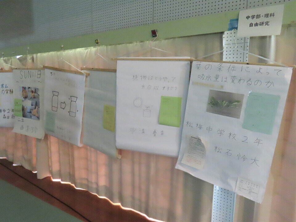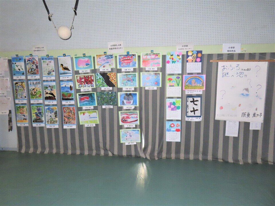展示発表会は体育館スペースにおいて、児童・生徒らの絵画作品や夏休みの理科作品、研究作品、自由作品などが紹介され、日常生活の中で生じた疑問への研究や創作力あふれる手づくり作品もあり、日々、問題意識を持って取り組んでいる姿勢を感じました。