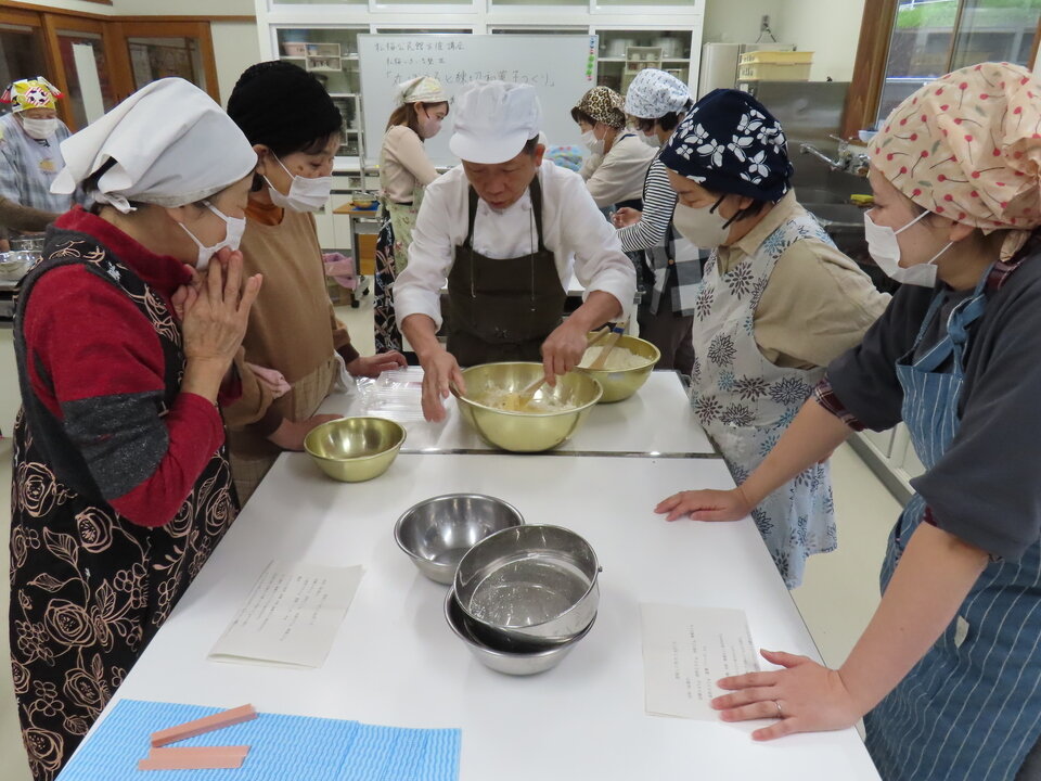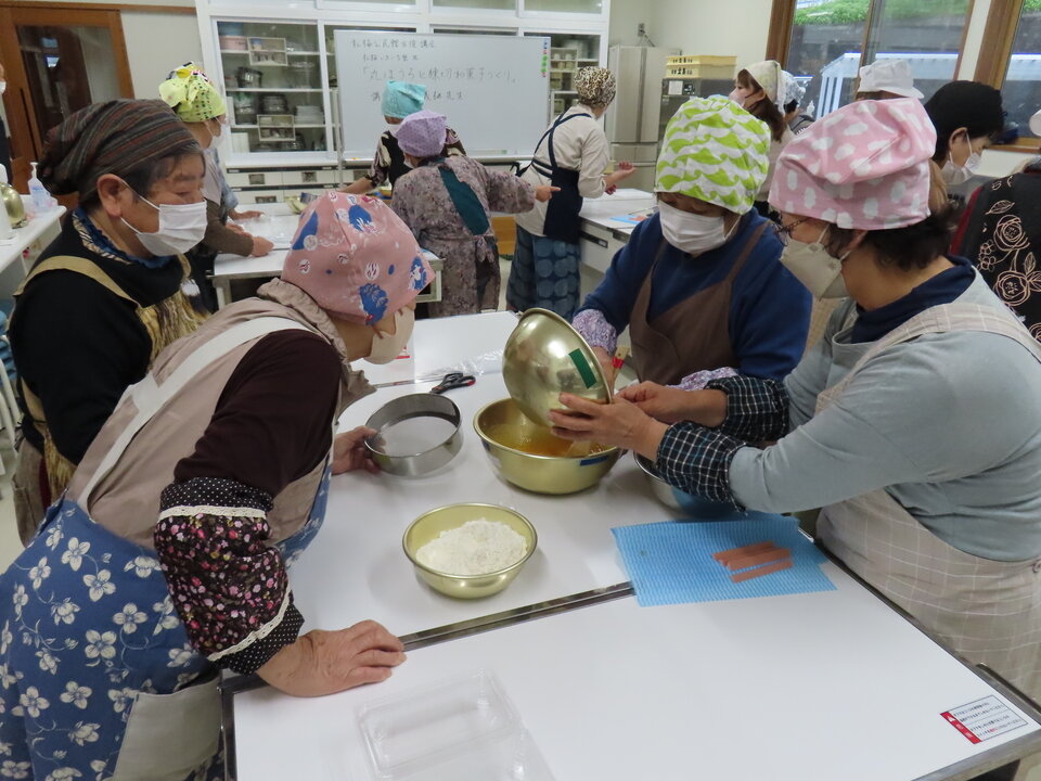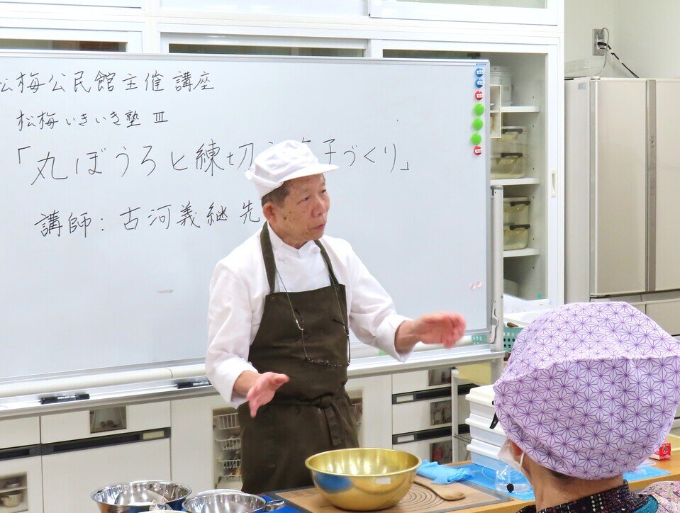 10月31日(金)松梅公民館調理室において、主催講座「丸ぼうろと練切和菓子づくり」を開催しました。講師は佐賀マイスターに認定されている㈱北島の技術顧問・古河義継氏です。![]()