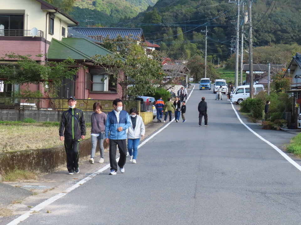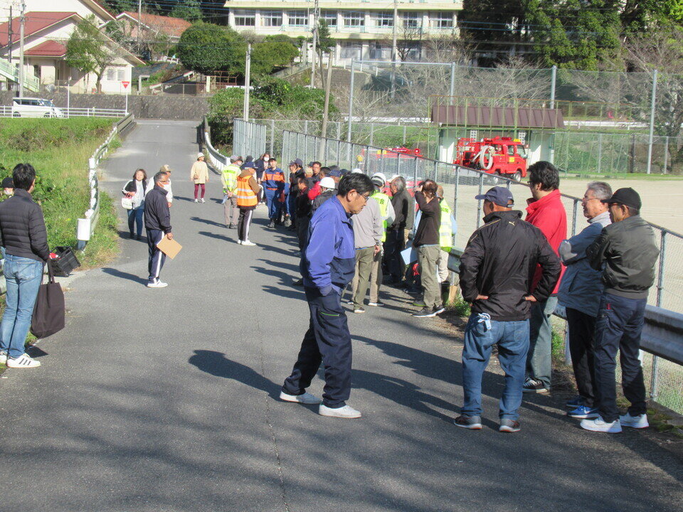 各地区の公民館等(一次避難場所)に集合し、各班長が人員を把握後、避難誘導