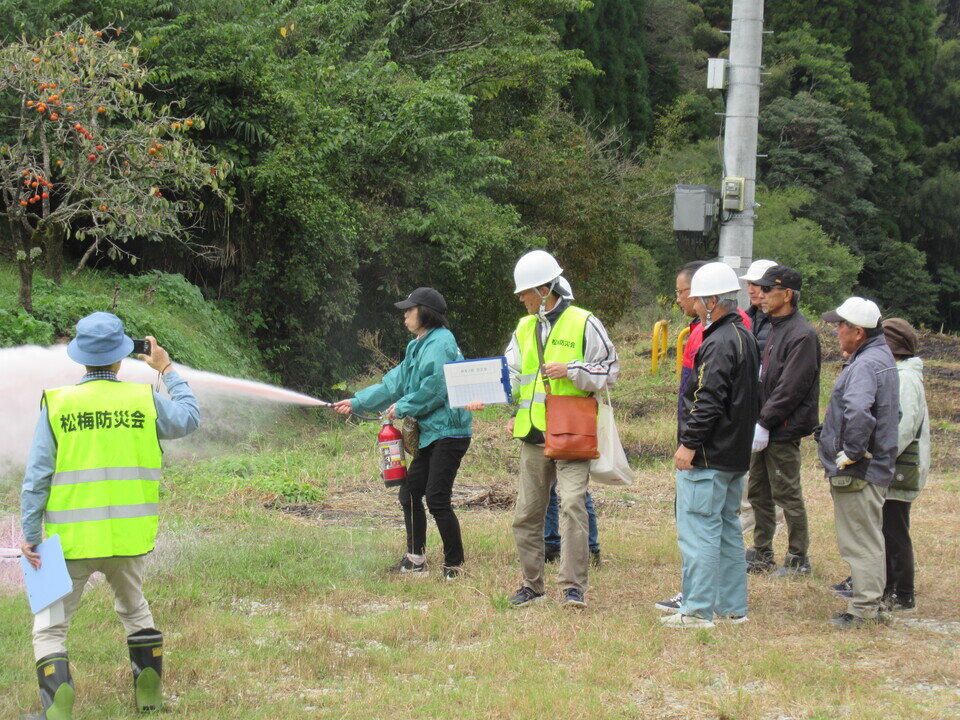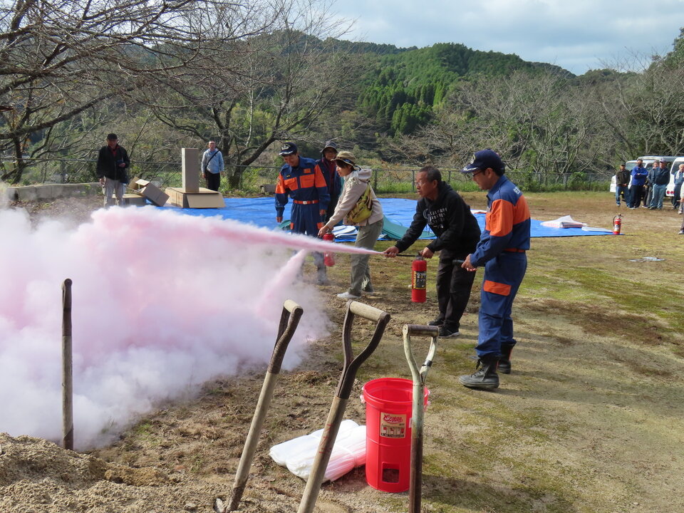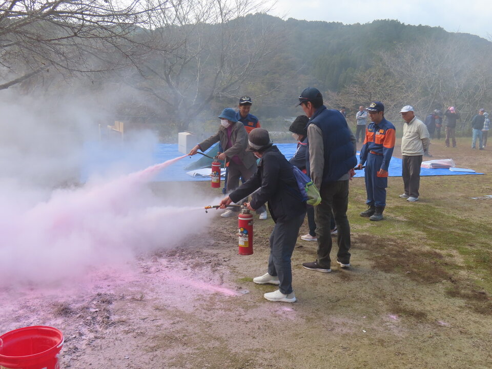 ★消防団員による消火器使用説明後、各自治会の代表者が消火訓練を行いました。