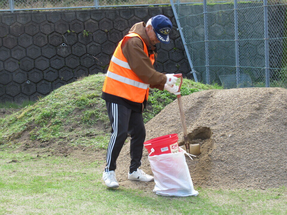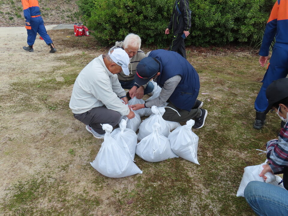 ★土嚢袋作りとして、土を入れた後の土嚢の結び方や並べ方について学びました。