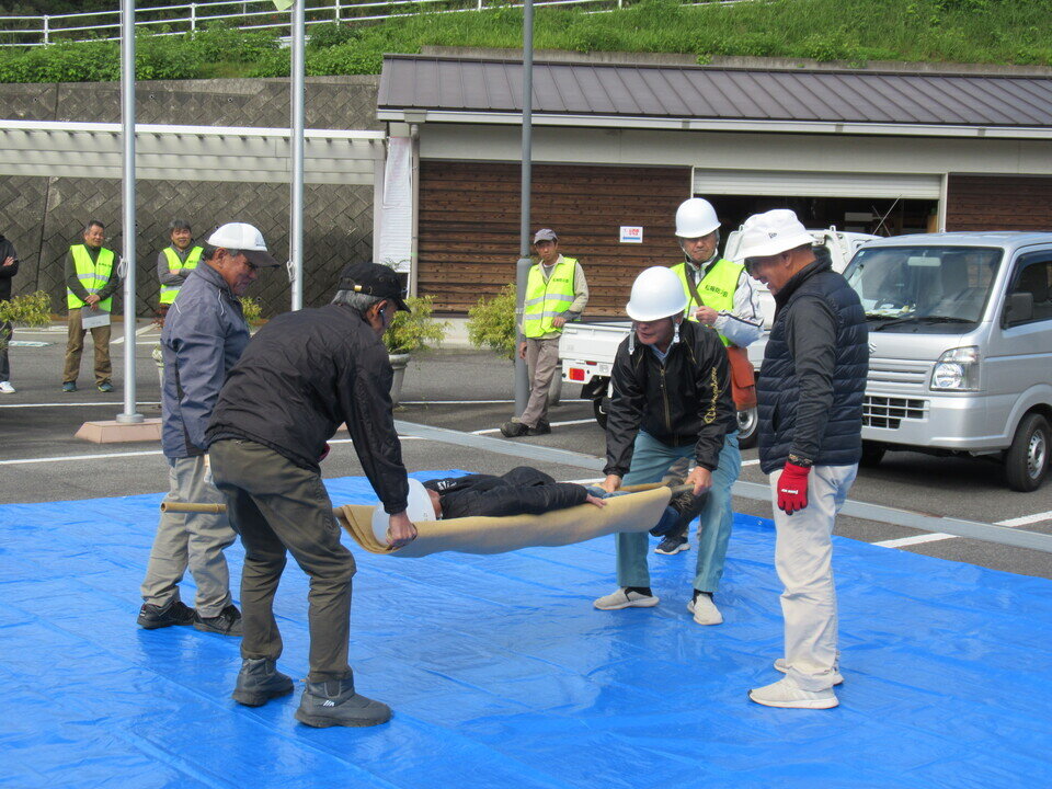 段ボールベッドの作成と応急担架作成・運搬について学びました。