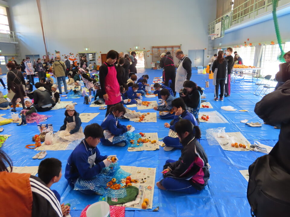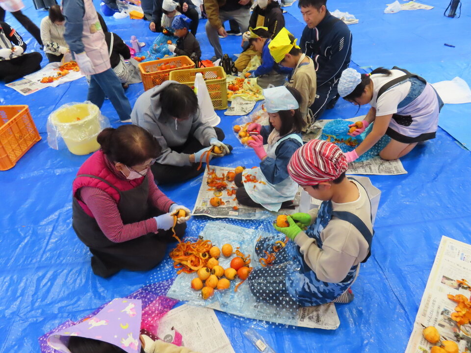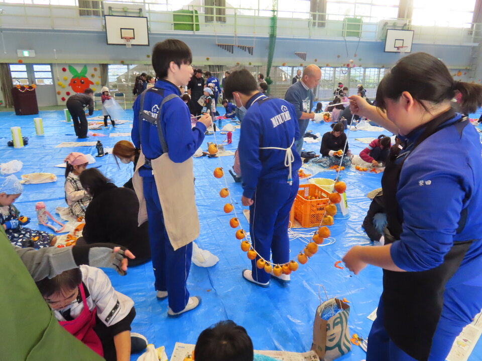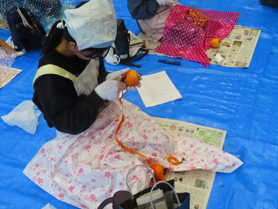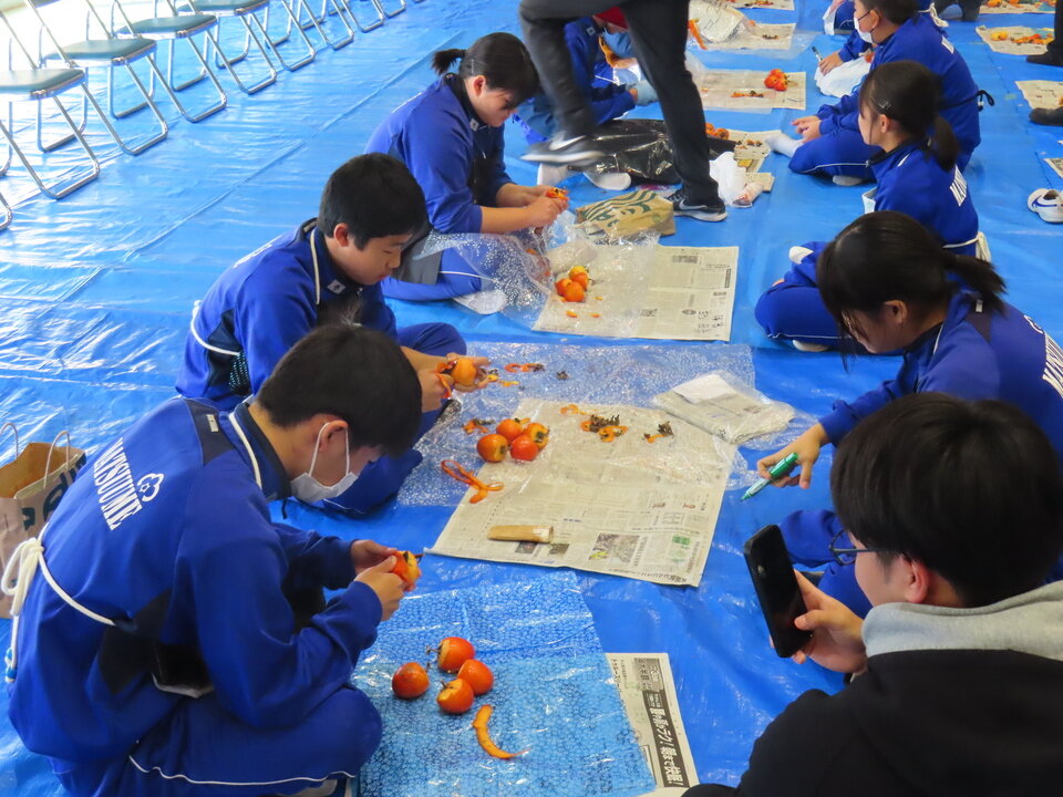 最後は児童、生徒、保護者など全員で「ふれあい柿むき」です。