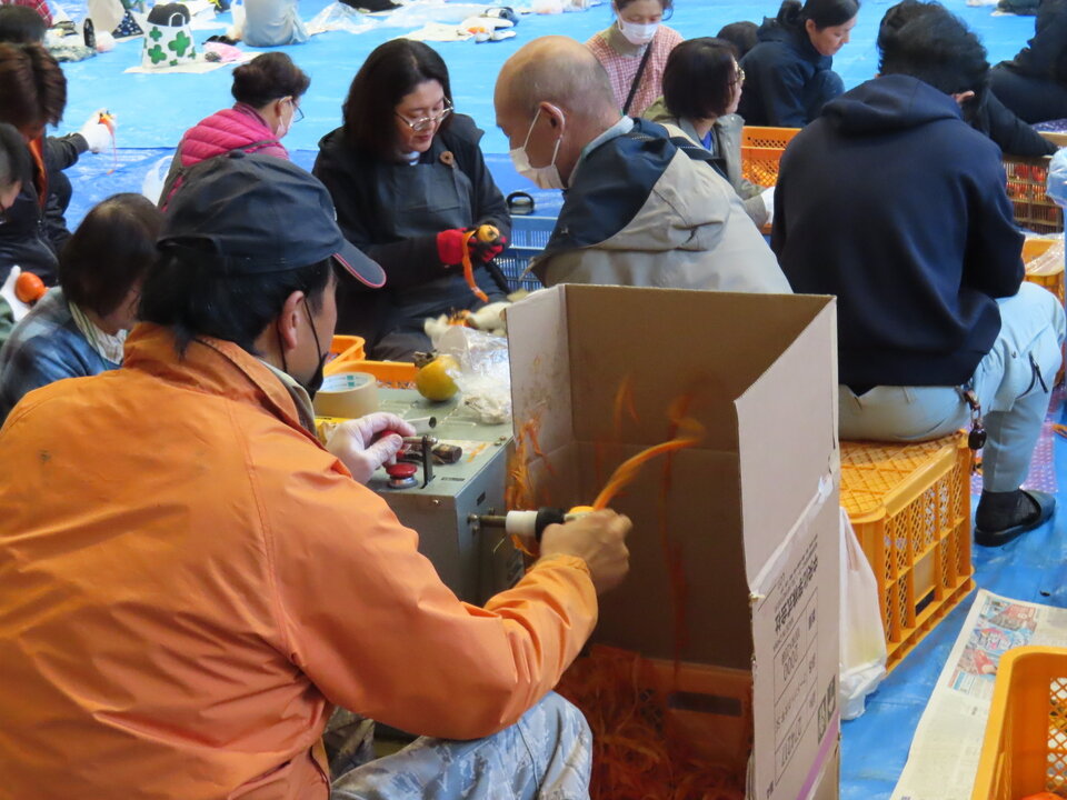 会場のみなさんは和やかな雰囲気で柿むきをしました。