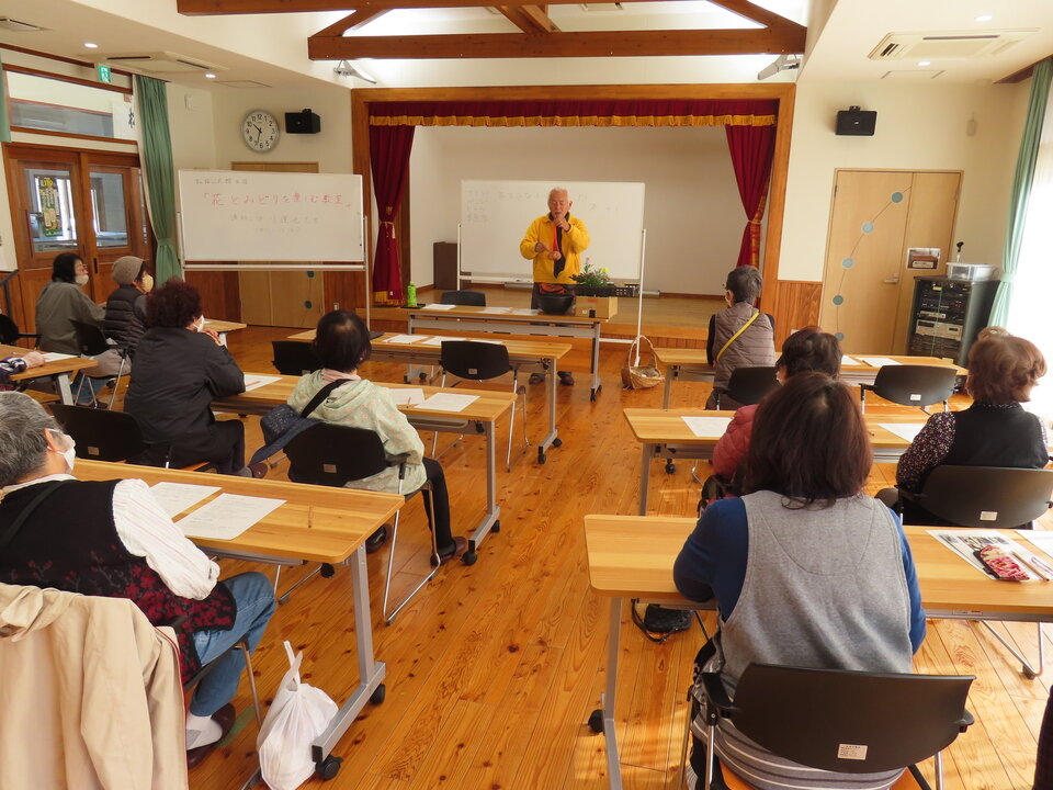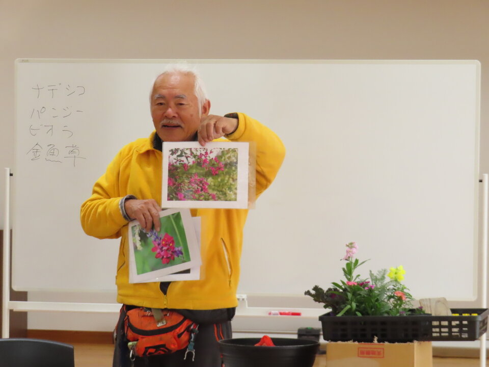 「花とみどりを楽しむ教室」では、毎回、講師・中川達也先生の花や植物に関するためになるお話を楽しみにしています。