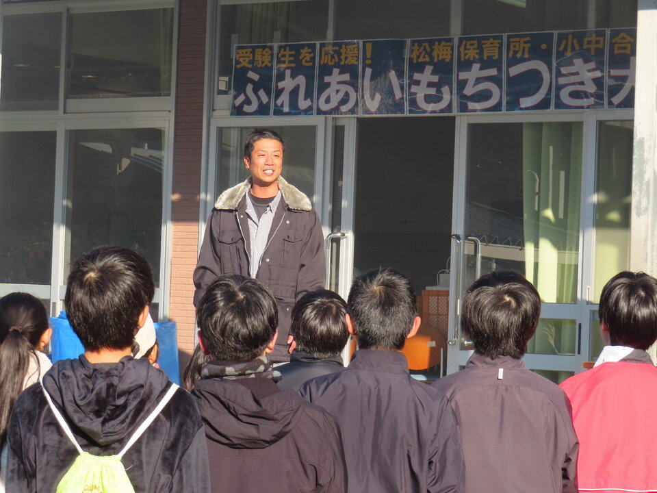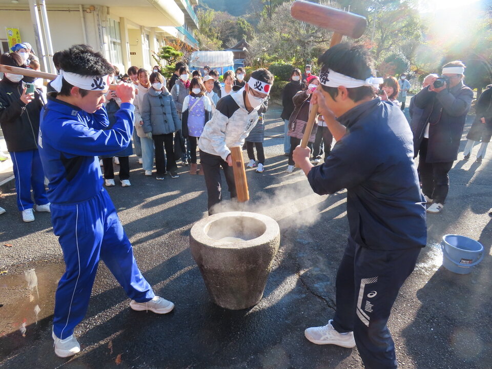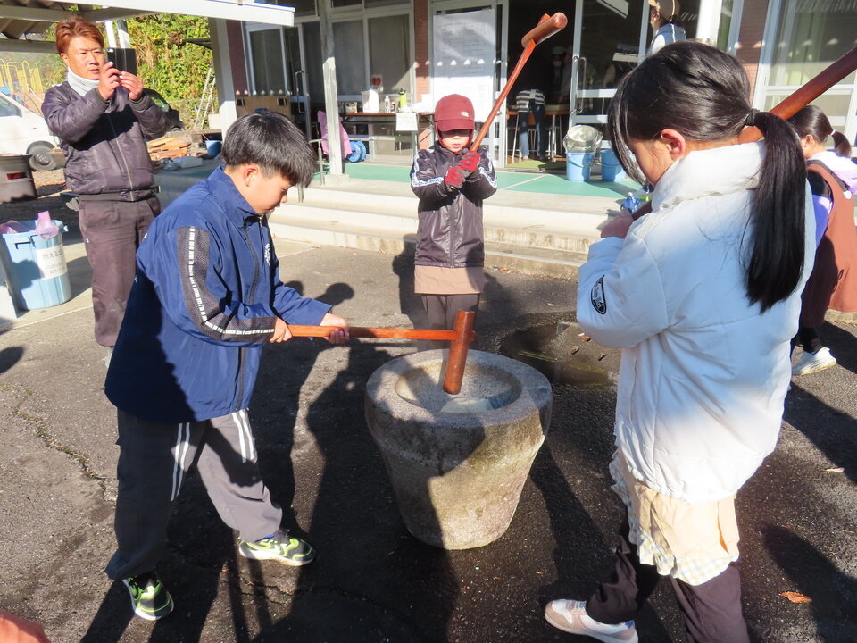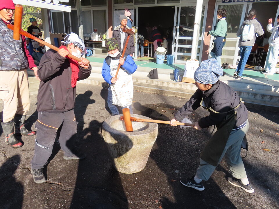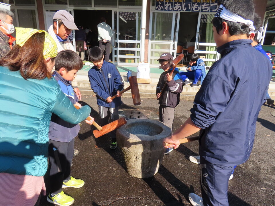 12月6日(日)、小中一貫校松梅校において、松梅保育所&松梅校保護者会主催の「松梅保育所・小・中合同 ふれあいもちつき大会」が開催されました。当日は子どもから高齢者まで幅広い世代の皆さま約100人が参加され、地域の交流を深めることができました。