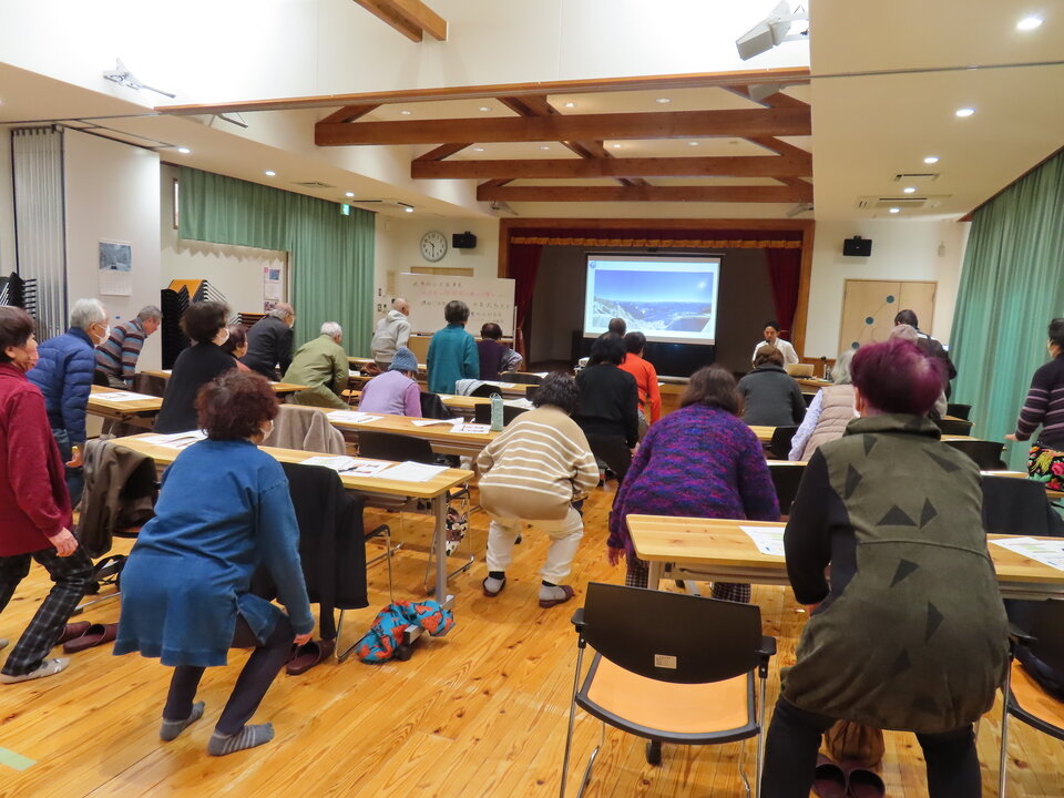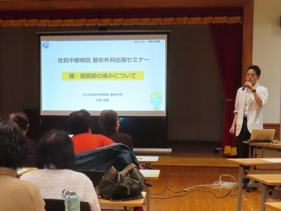 松梅公民館主催による「股関節・膝関節の痛み対策セミナー」を1月21日(水)に開催しました。当日は、日常生活の中で股関節や膝の痛みに悩む地域の高齢者を中心に32人の参加がありました。