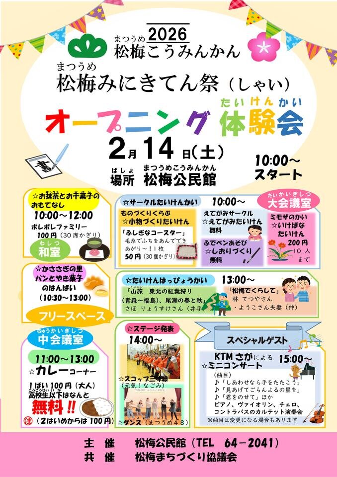 松梅みにきてん祭(しゃい)「オープニング体験会」を開催します。