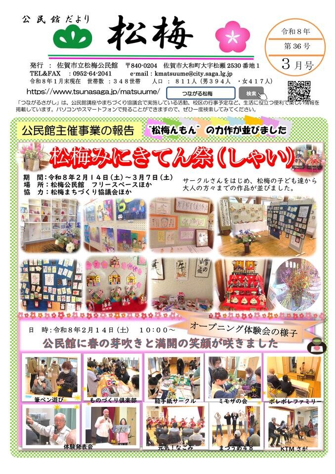 令和8年3月号「松梅公民館だより(第36号)」を発行しました。
