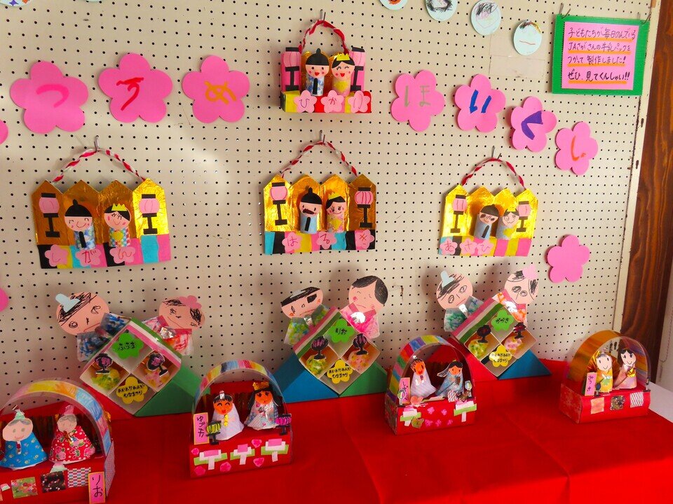 松梅保育所の子どもたちの製作によるお雛様さま飾り