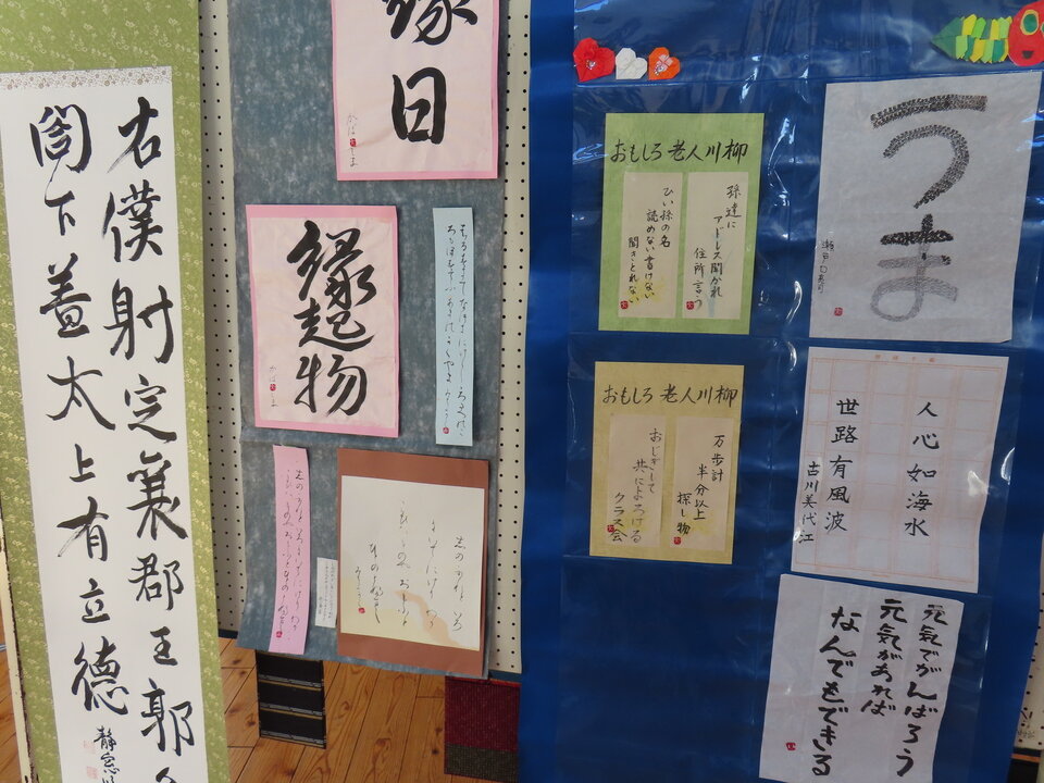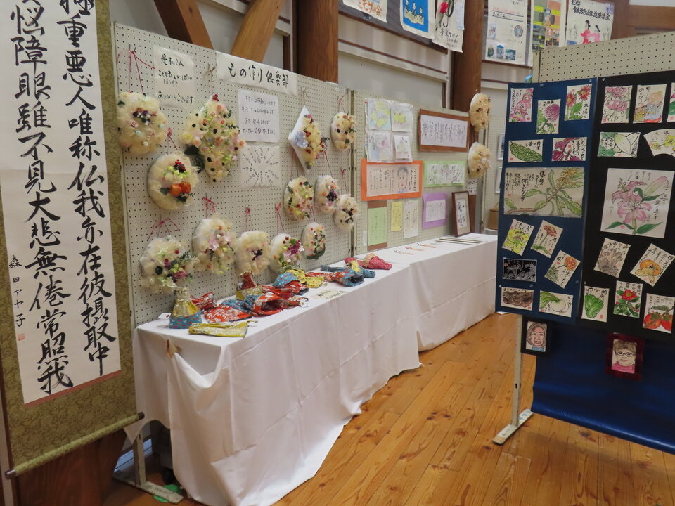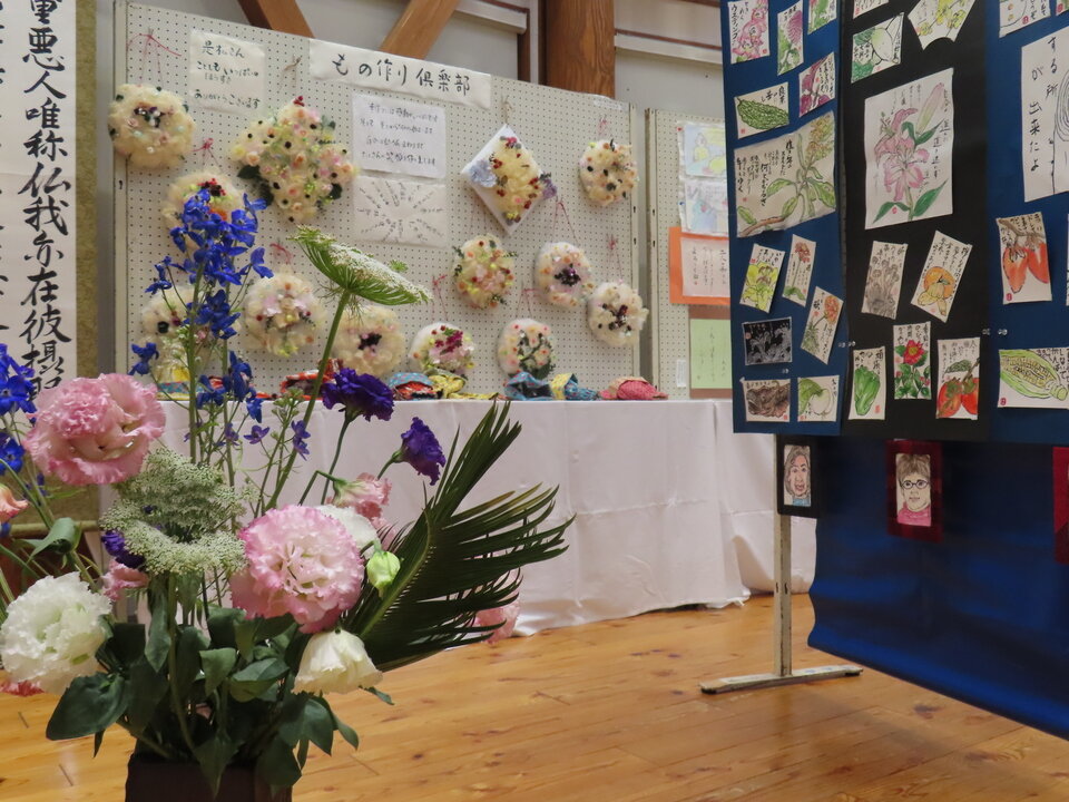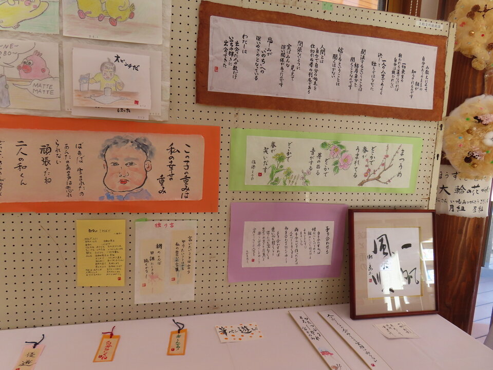今回も公民館サークル5団体と保育所や小中一貫校松梅校の児童・生徒等ほか、一般住民の個人の方々のご協力のもと、たくさんの作品を展示することができました。
