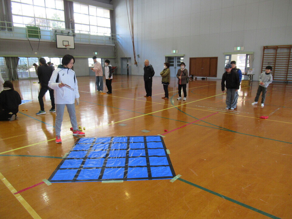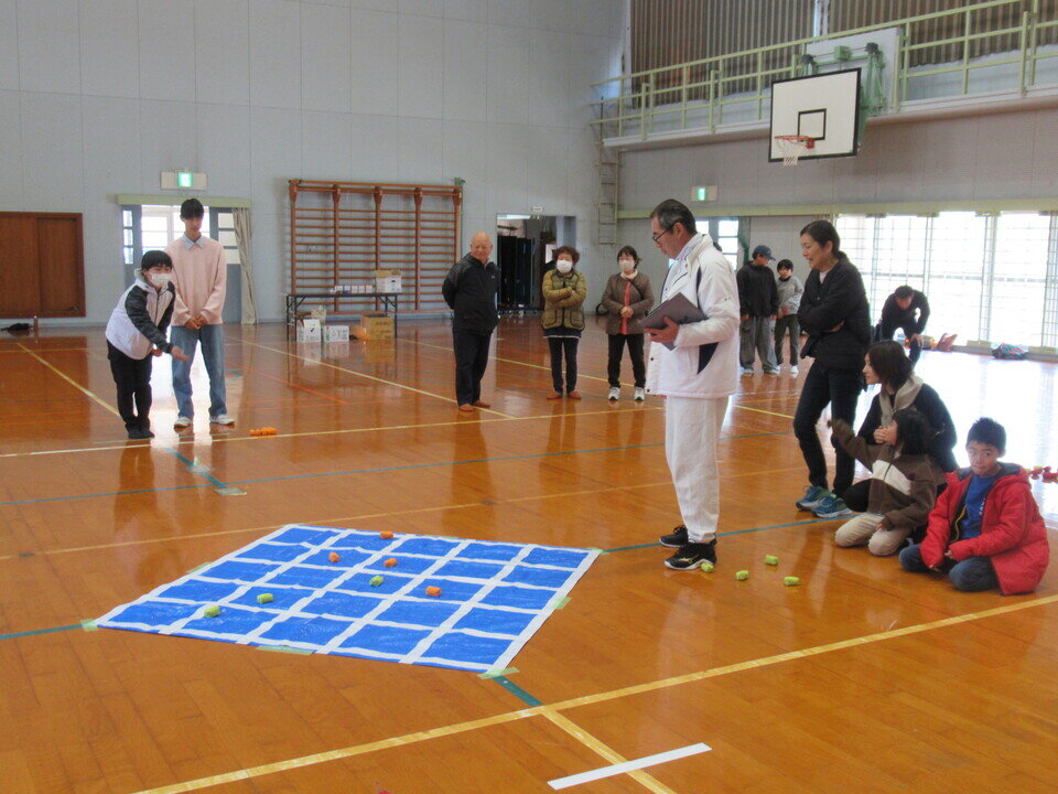 松梅校区体育協会は、令和8年3月15日(日)、小中一貫校松梅校体育館において地域住民の交流と健康づくりを目的として「松梅校区いごてだま大会」を開催しました。