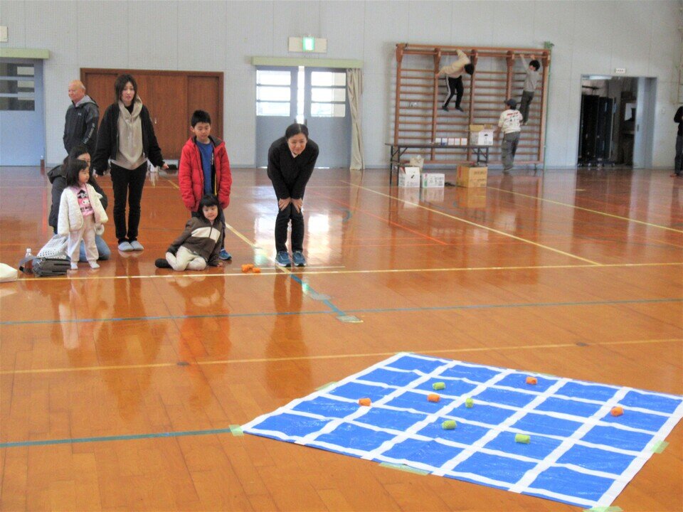 参加者らは、和やかな雰囲気の中にも、いざ自分の投げ入れ番になると表情も一変しました。会場では「惜しい!」「やった!」といった声が上がり、自分のお手玉が枠内に入ると飛び上がって喜んだり、チームメートと駆け回ったりする子どもらの姿もあり、それぞれが一喜一憂しながらも終始活気に包まれていました。