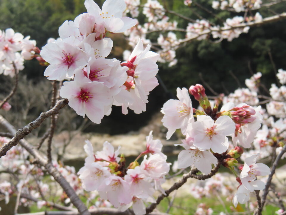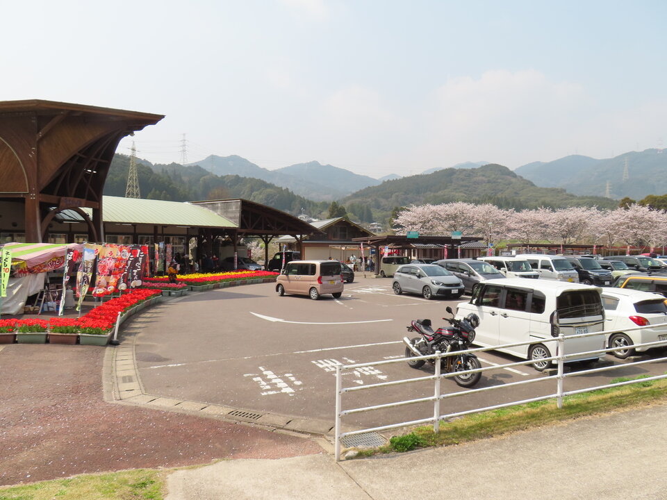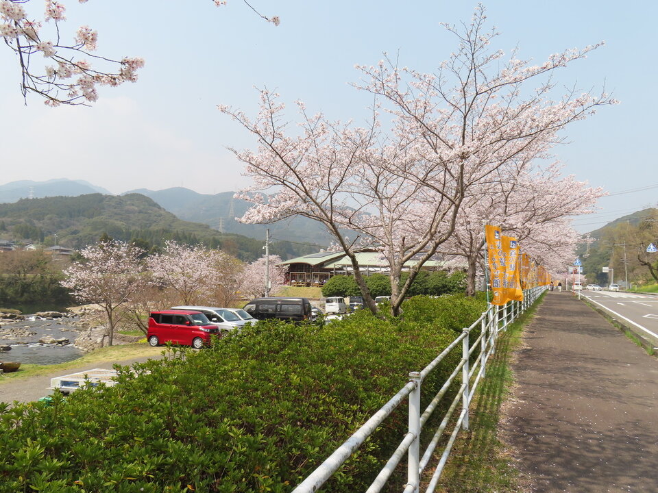 そして3月下旬になれば、春を彩るのは何といっても山の斜面や庭先に咲く桜の花です。淡いピンクや白の花々が、まだ色の少ない山々に優しい彩りを添え、訪れる人の心を和ませます。道の駅大和「そよかぜ館」の周囲を取り巻く桜は3月末に満開を迎え、地域全体が明るい雰囲気に包まれ、春の到来を実感させてくれます。桜見たさに駐車場に出入りする車も多くなり、多くの人で賑わい活気づいています。