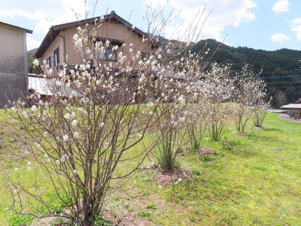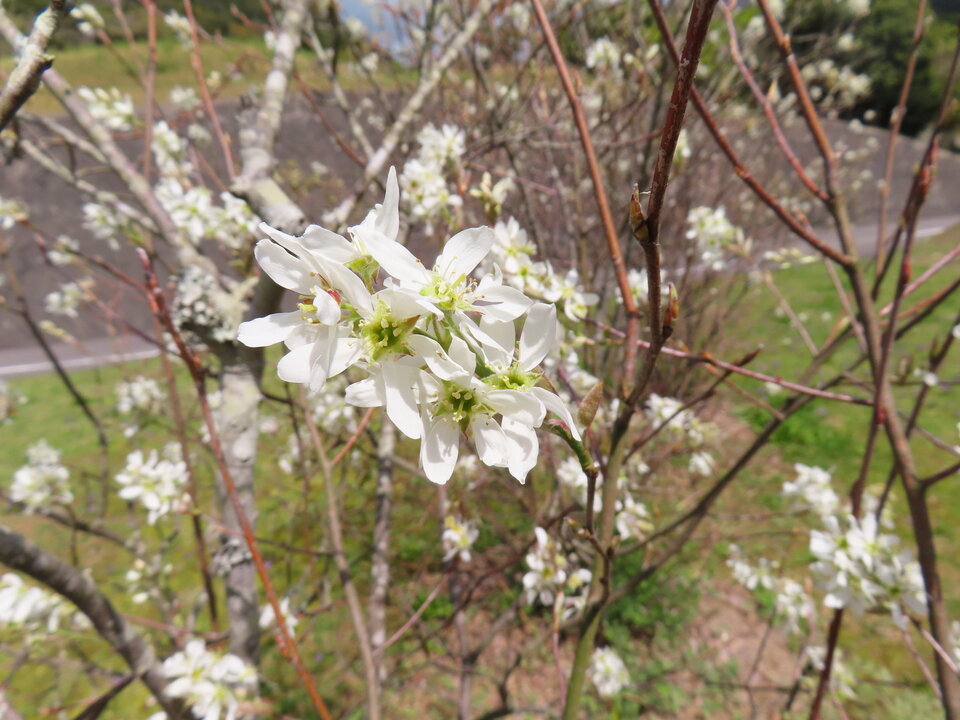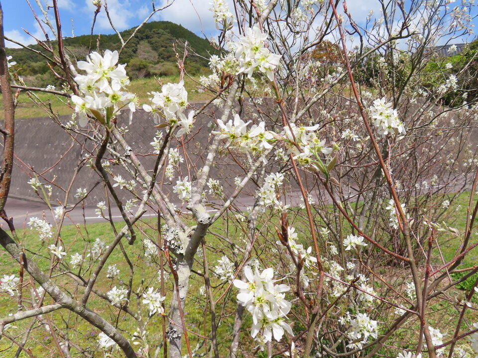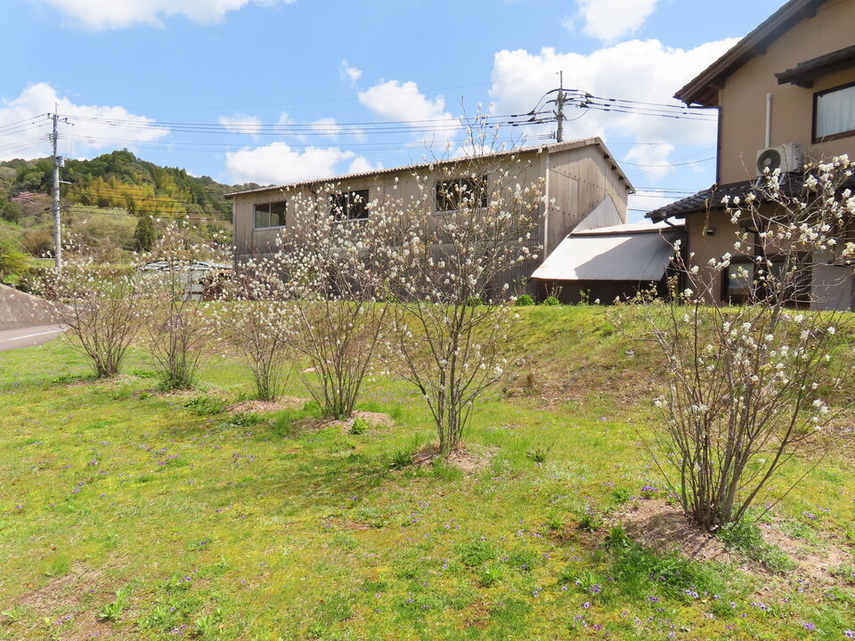 松梅公民館の登り口庭には6本の「ジューンベリー」の木があります。いつ頃、誰が何のために植えたのかわかりませんが、今年も白い花が咲きました。松梅の朝夕は肌寒さも感じますが、春のやわらかな陽ざしを受けて小さな花々が枝いっぱいに広がり、訪れる人の心を和ませています。これから初夏にかけて赤い実を結び、季節の移ろいを感じさせてくれることでしょう。