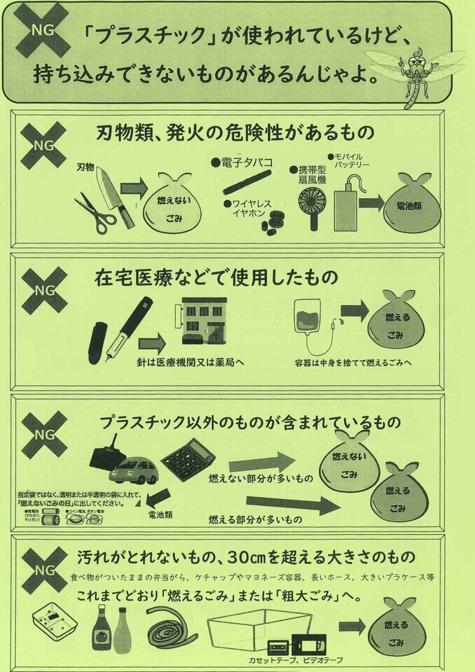 また、回収ボックスの取り換えの際に見ると、プラスチック資源以外のものが入っていたり、洗わずにボックスへ入れられているものも見受けられます。